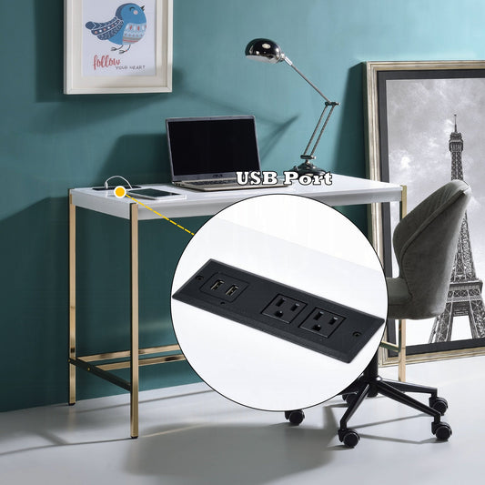 Lunar Elegant Multi-Purpose Desk w/USB Port - White/Gold