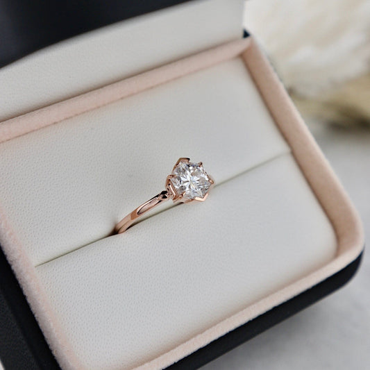 Bague solitaire Hexagone en or 14K -18K et moissanite 2 ct