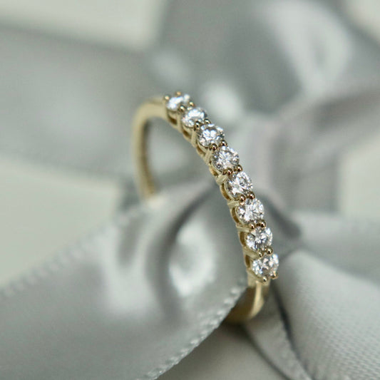 Bague semi-éternité à 8 moissanites en or 10K ou argent sterling