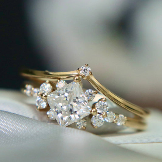 Bagues Ensemble d'alliances Princesse en or 10K et moissanites