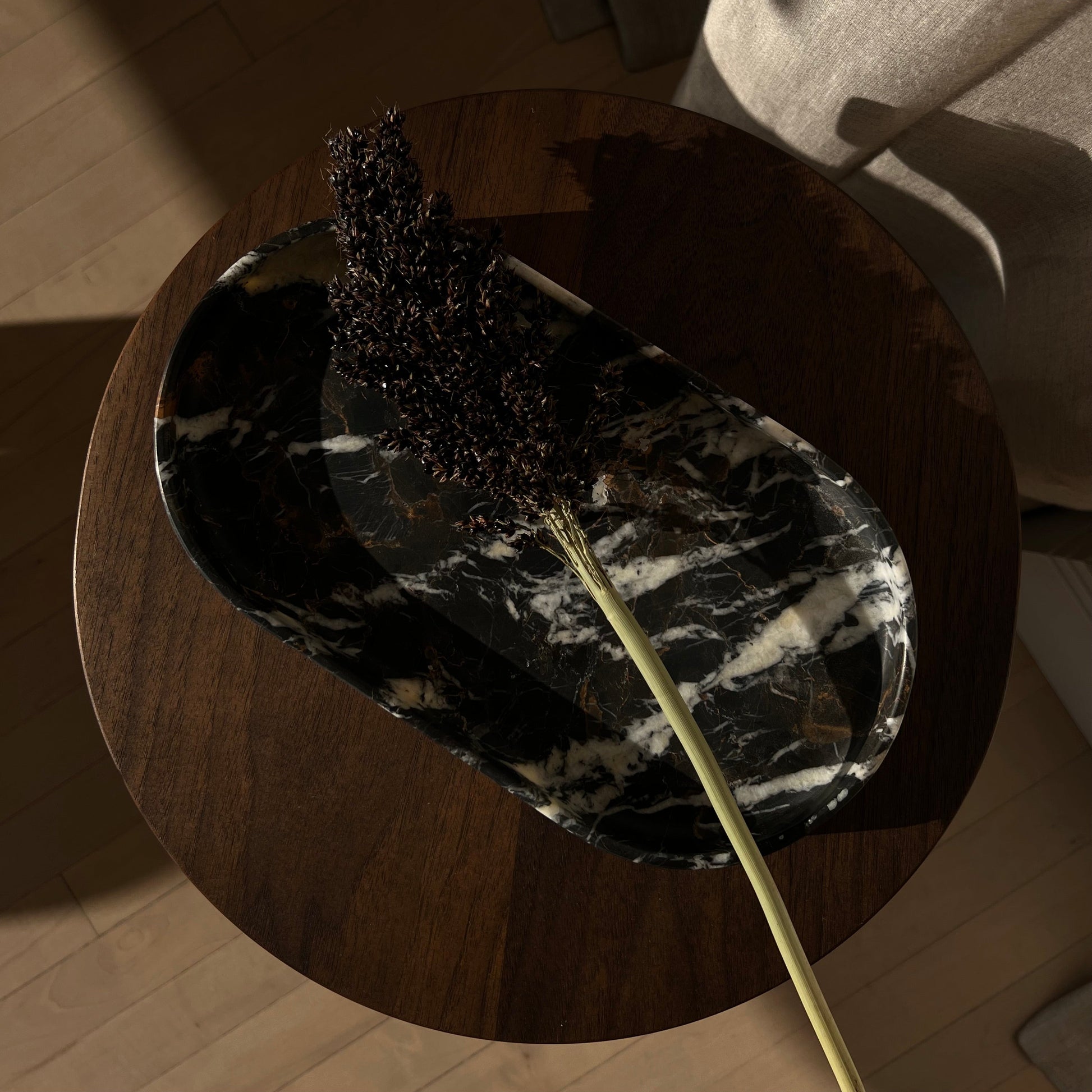 Perfect as a finishing touch to any vignette or as a catchall to hold your keys, loose change, and other small objects. The minimalist form of the 003 Ellipse Tray showcases the elevated materiality of the stone. The bottom is trimmed by a faceted edge and finished with a branded brass coin inlayed into the surface for that final touch of refinement.