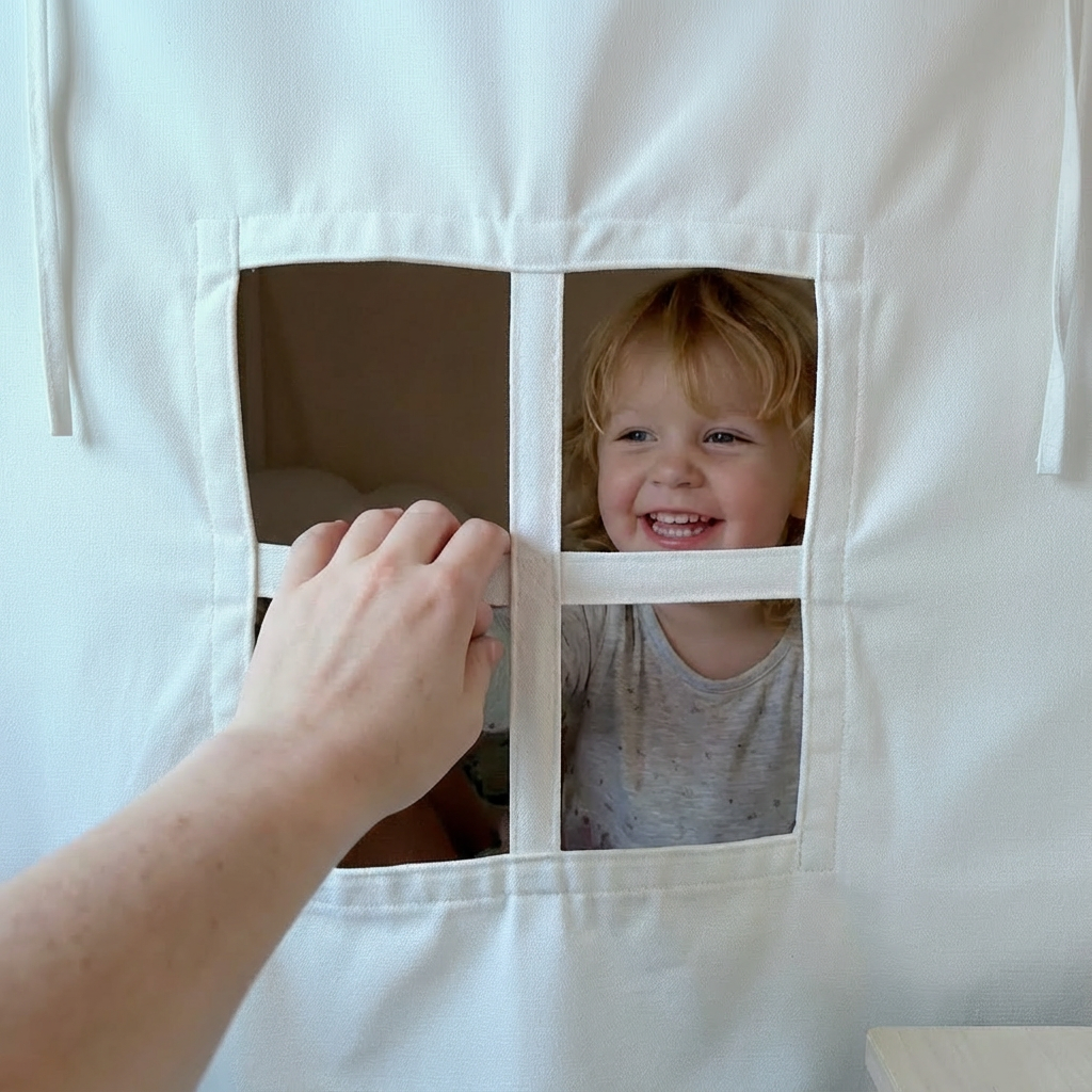 Turn your child’s bed into a cozy hideaway with our ARY House Bed Canopy, crafted from a breathable cotton blend. This full-coverage canopy instantly transforms your child’s Montessori-style bed into a magical space for restful sleep, quiet reading, and imaginative play. Designed with charming peek-through windows and a front flap door, it offers a perfect blend of comfort, creativity, and all-season functionality. Whether it’s a shaded retreat in summer or a warm cocoon in winter, this canopy adds a dreamy, playful touch to any room while being easy to clean and safe for everyday use.