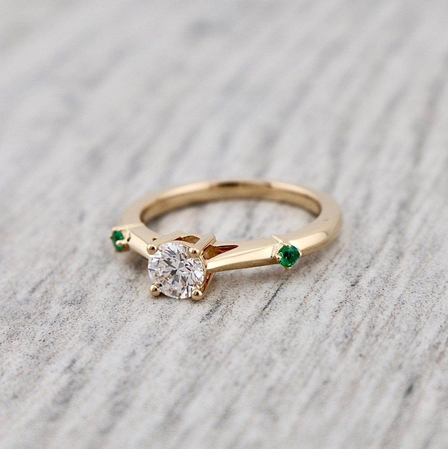 - Pierres d’accompagnement sur la bague solitaire : 2 émeraudes naturelles (0,07 ct au total)