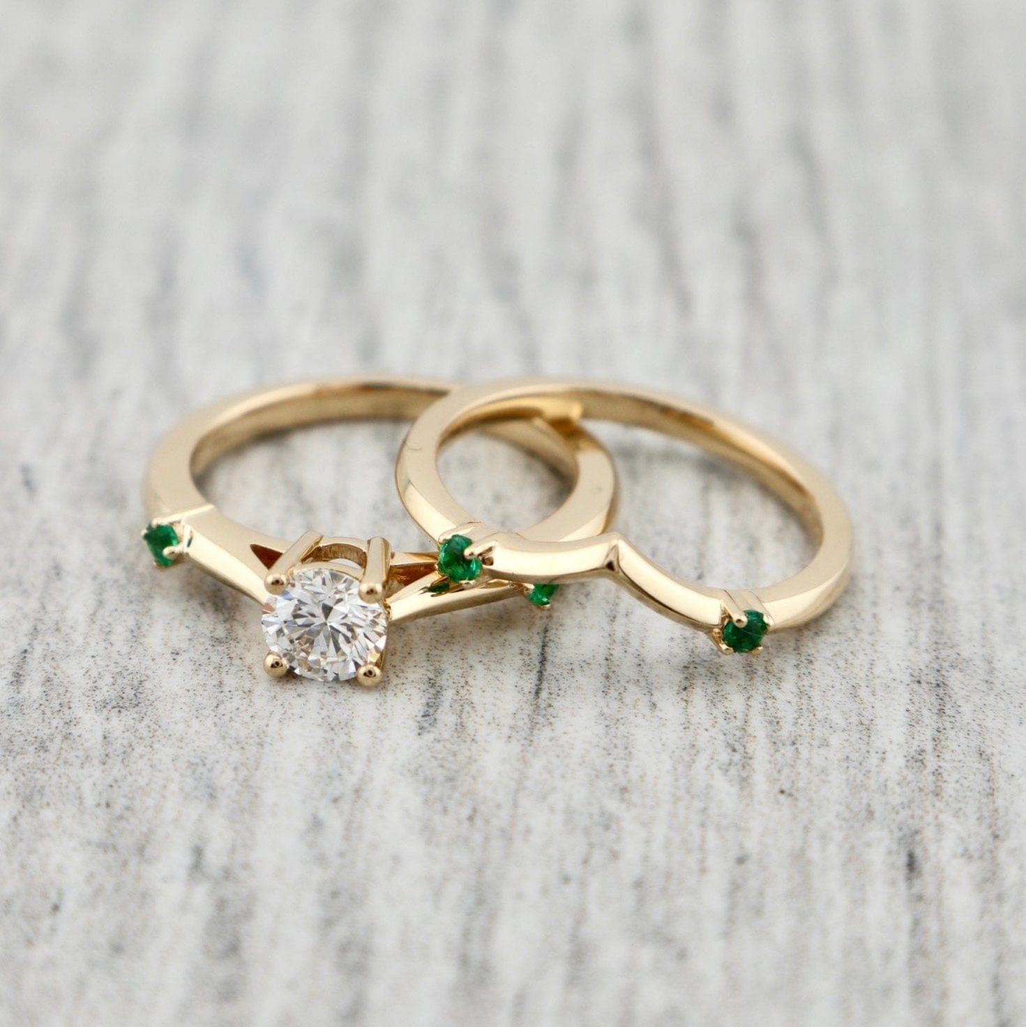 Bague ensemble D'alliance Émeraude et Diamant 0,5 ct