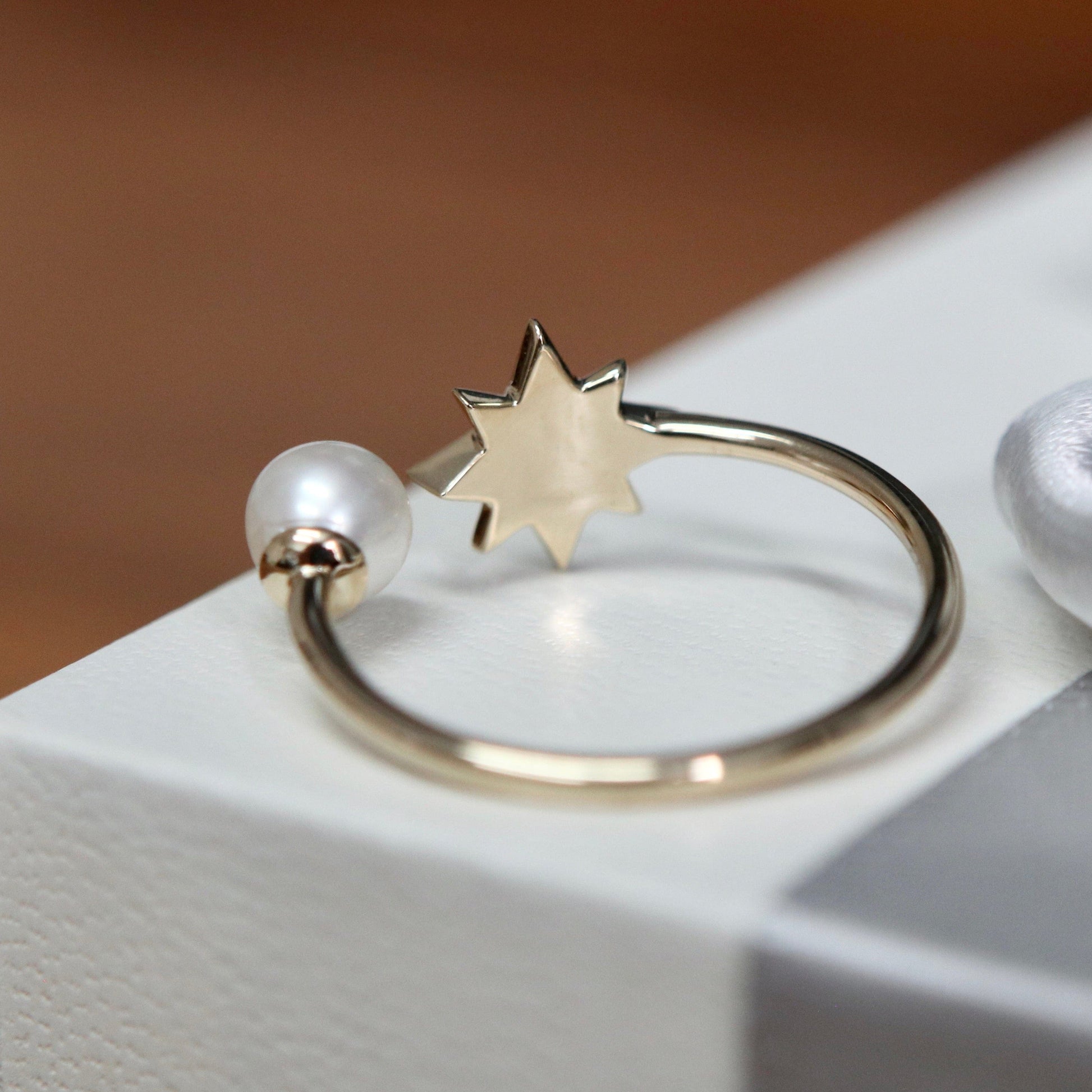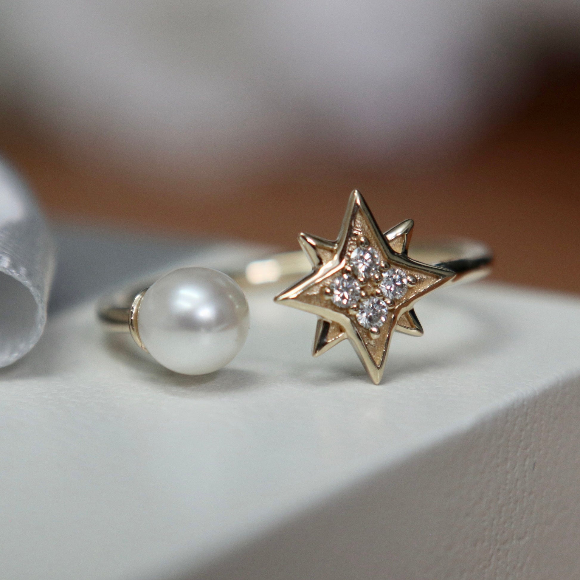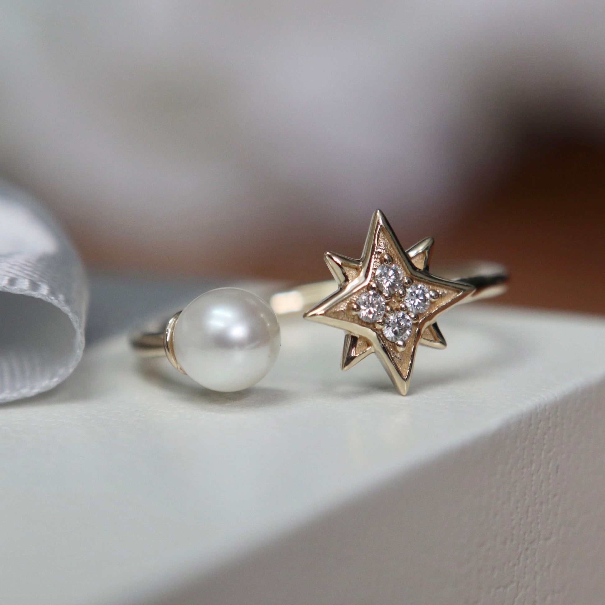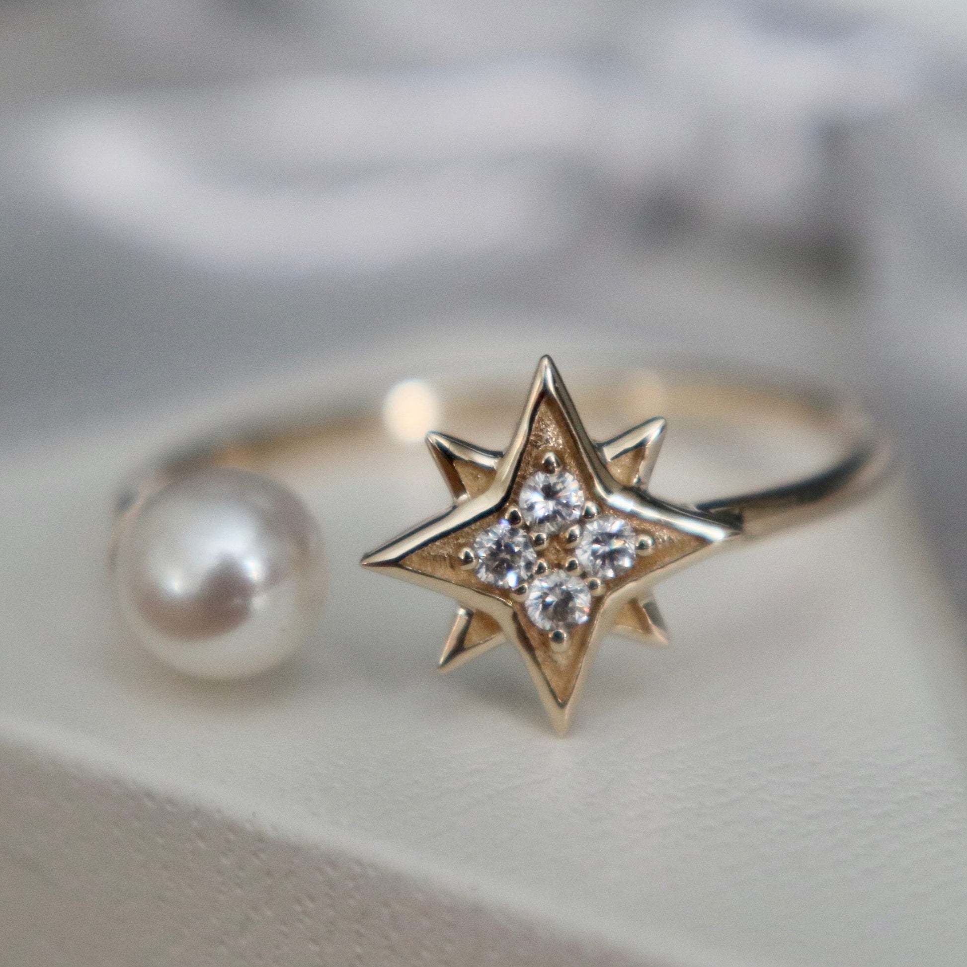 Bague Étoile du Nord en or 10K, perle et moissanites