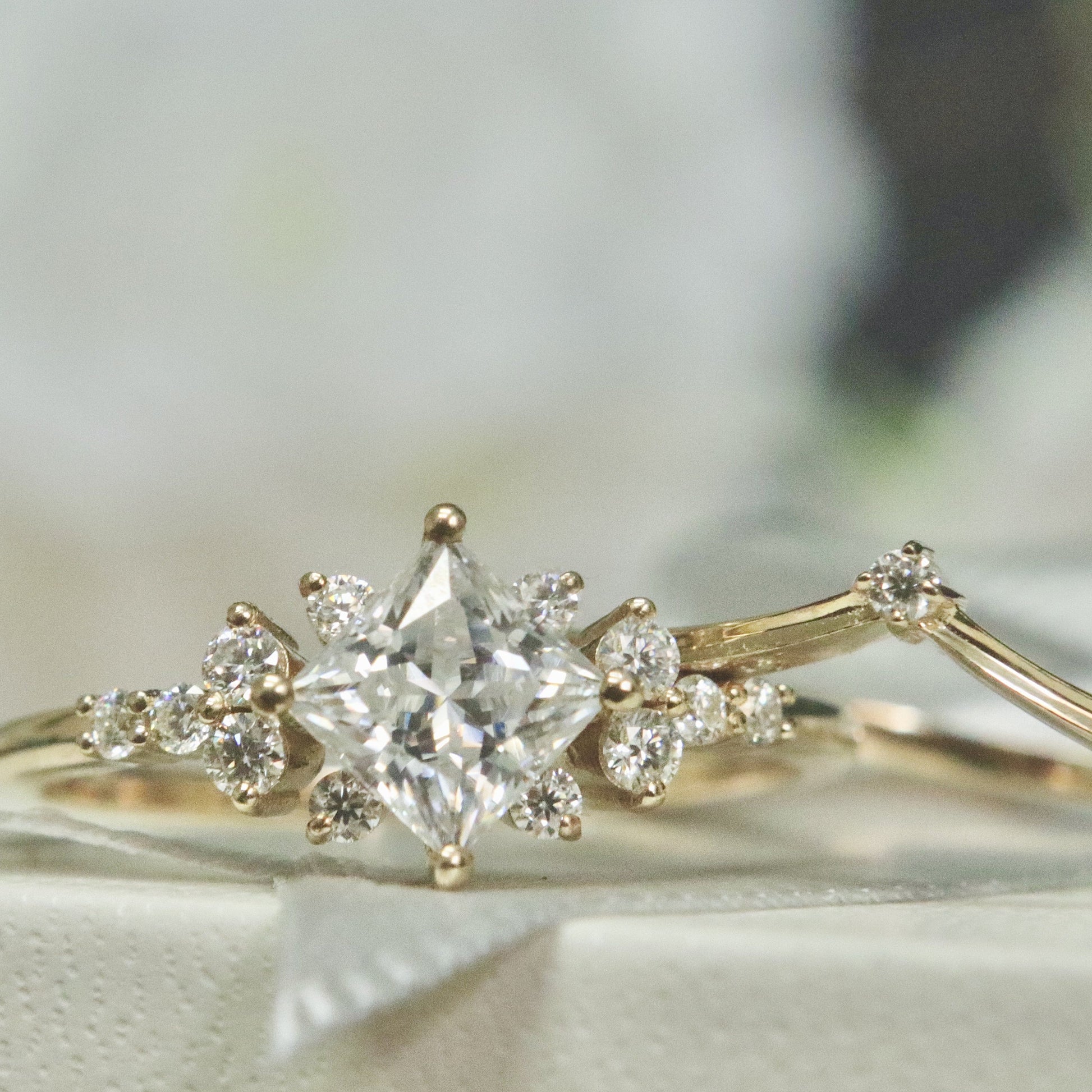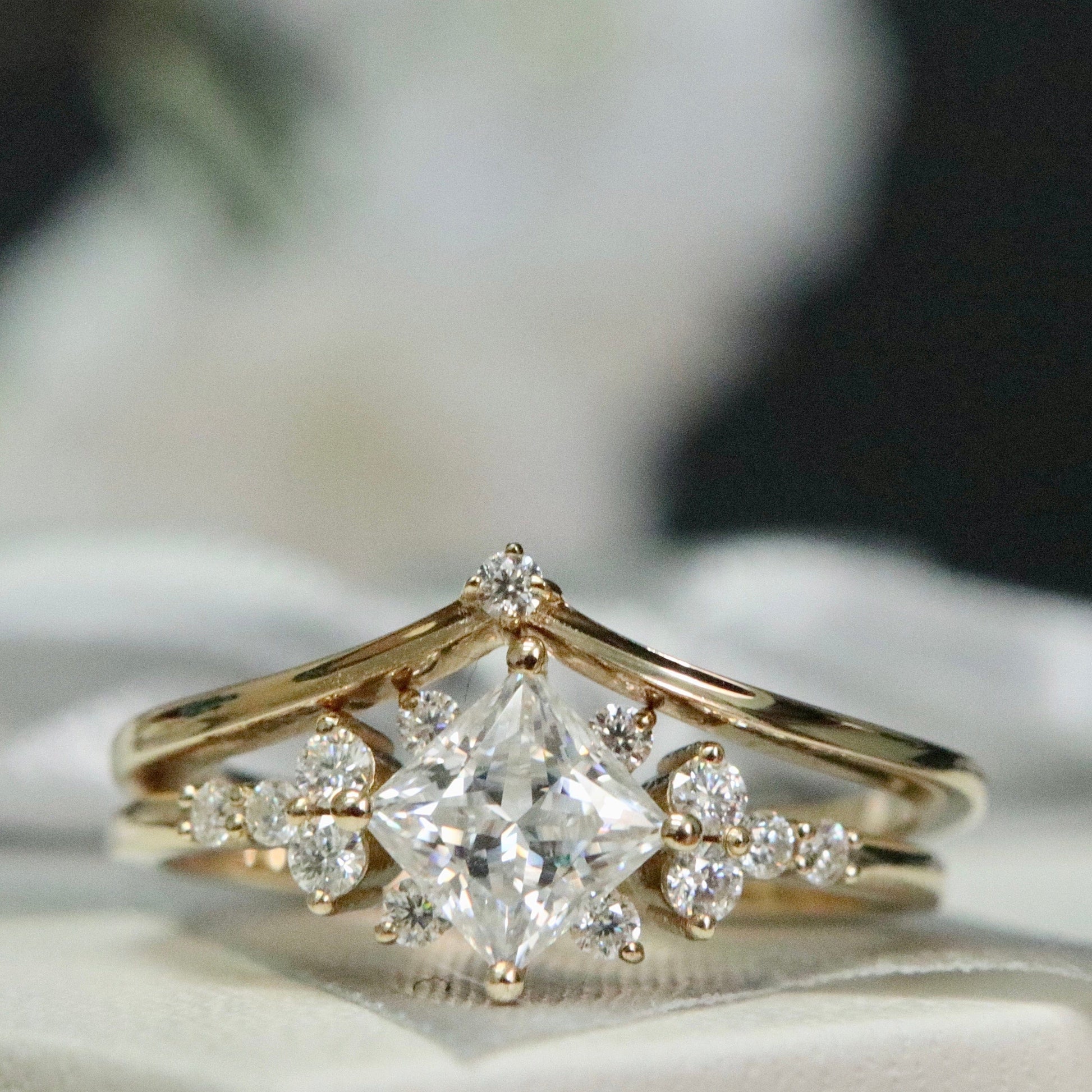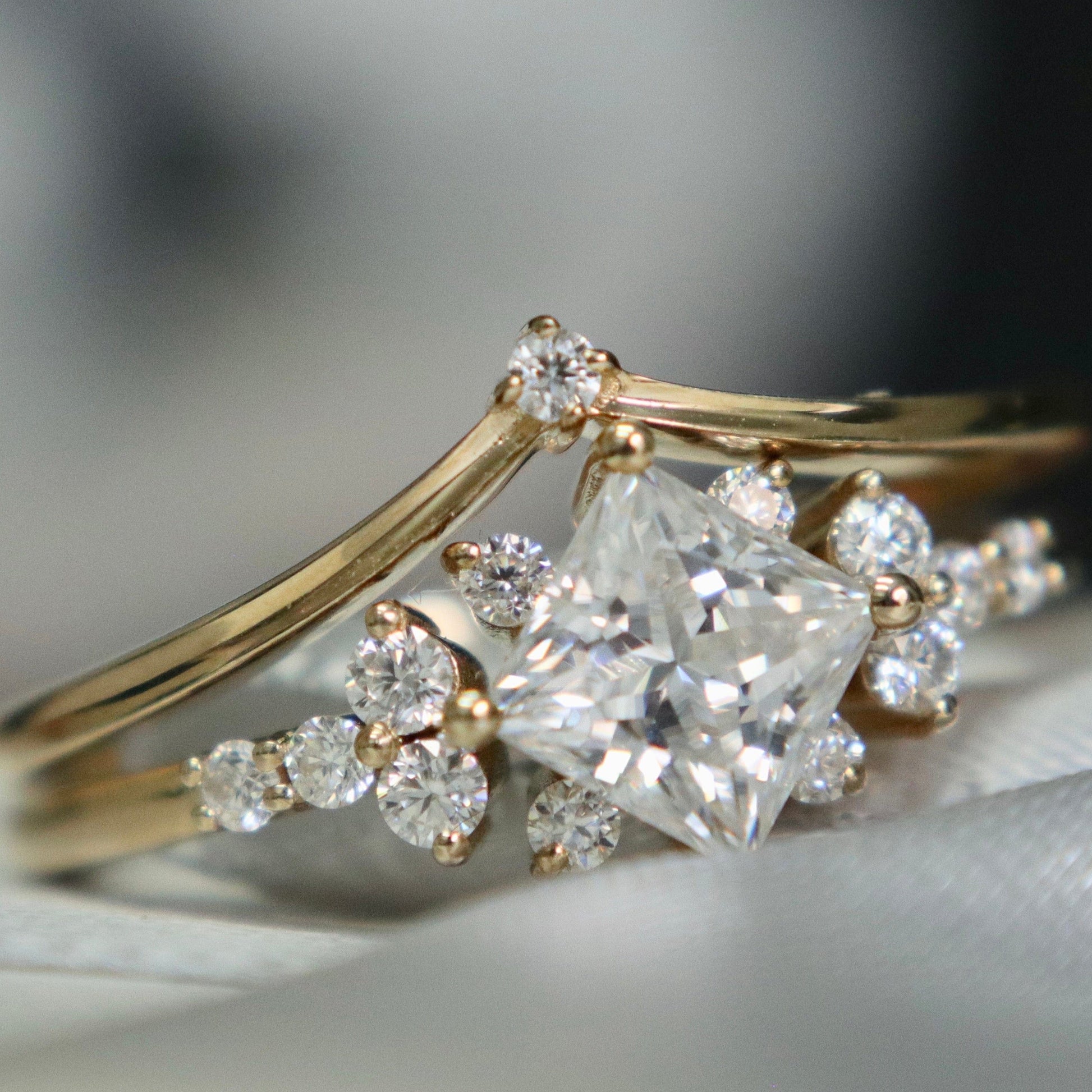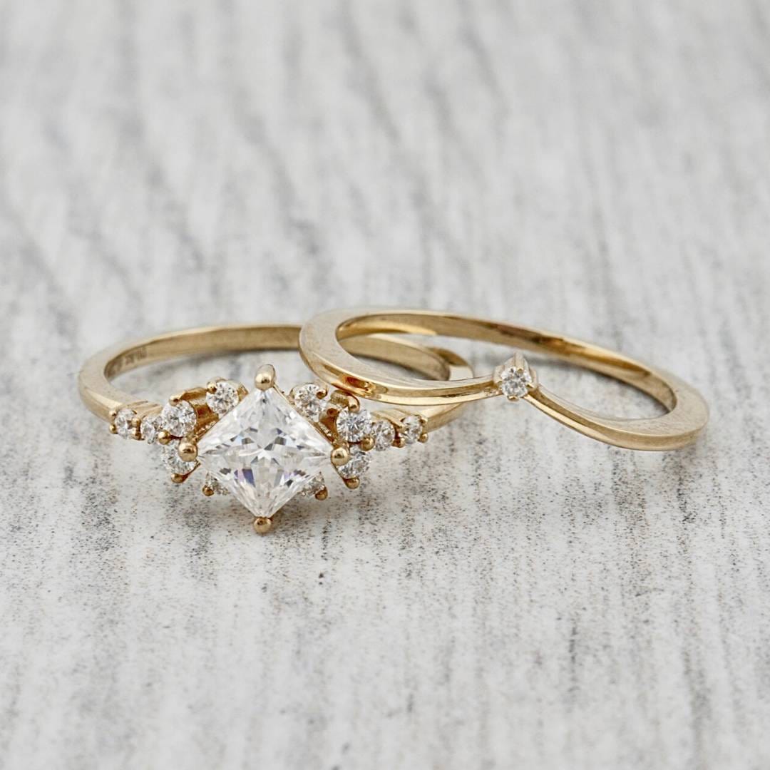 Bagues Ensemble d'alliances Princesse en or 10K et moissanites