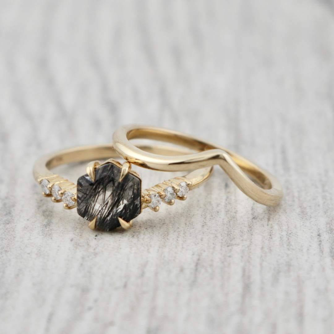 Bagues Ensemble d'alliances Rutile en or jaune 10K et moissanites