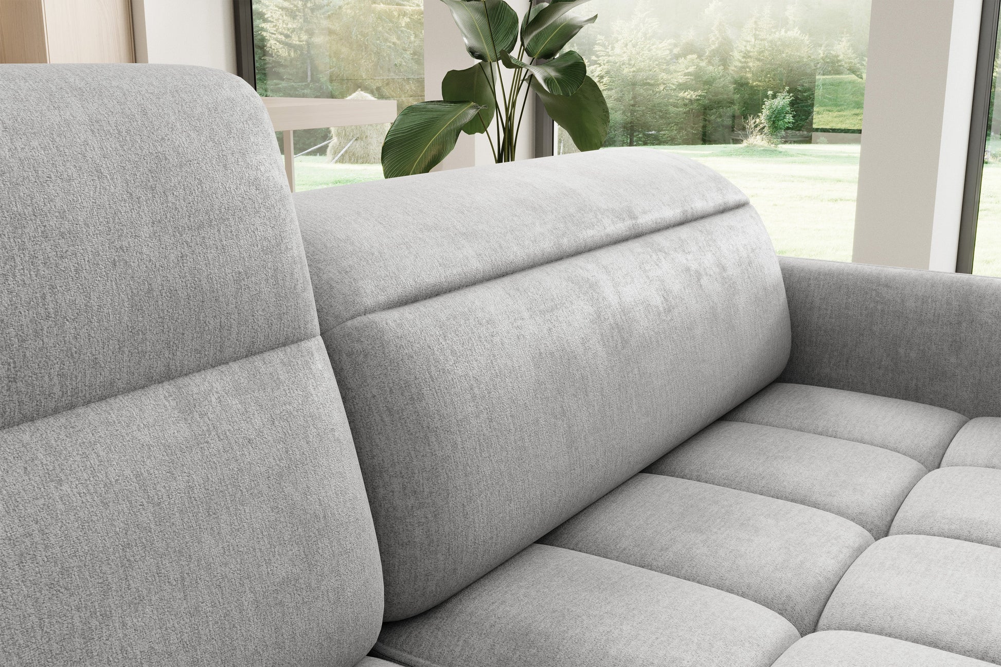 The Barea chaise sofa is an elegant and functional piece of furniture is equipped with adjustable headrests and metal black legs with a height of 10 cm. Its solid construction made from high-quality materials ensures durability, and the carefully contoured seat and backrest guarantee comfort and proper support for the back. The modern design of the Barea corner sofa makes it a perfect fit for both minimalist and more sophisticated interior arrangements. Available in various fabrics and color options, it is both aesthetic and functional, ideal for everyday relaxation and entertaining guests. Available in both left-facing and right-facing configurations. This item qualifies for FREE DELIVERY.