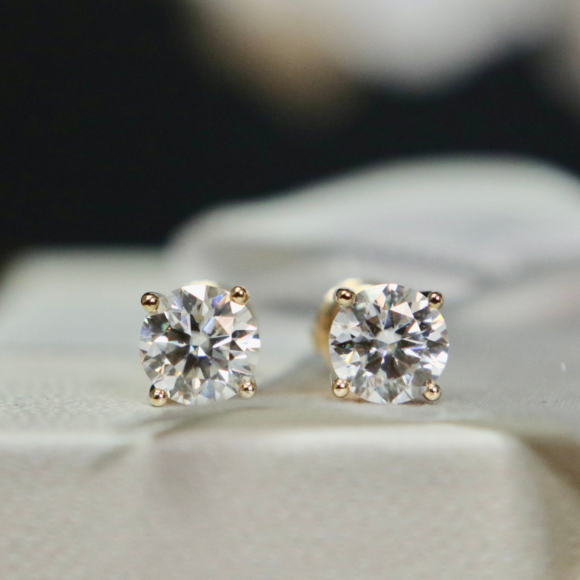 Boucles d'oreilles Classiques en or jaune ou blanc 10K et moissanites