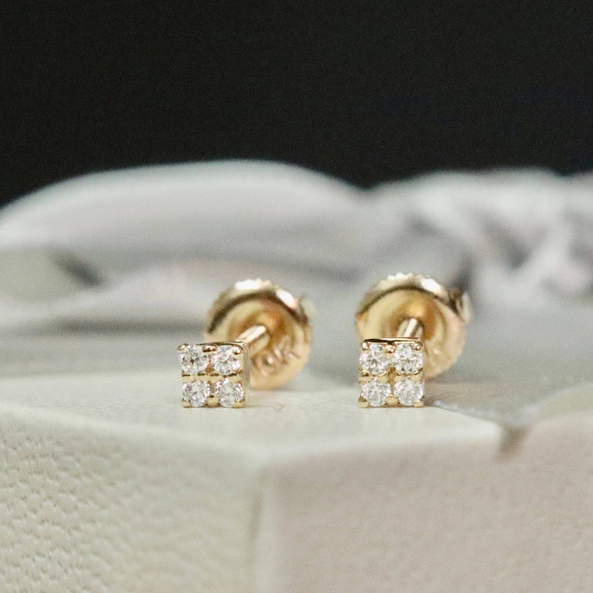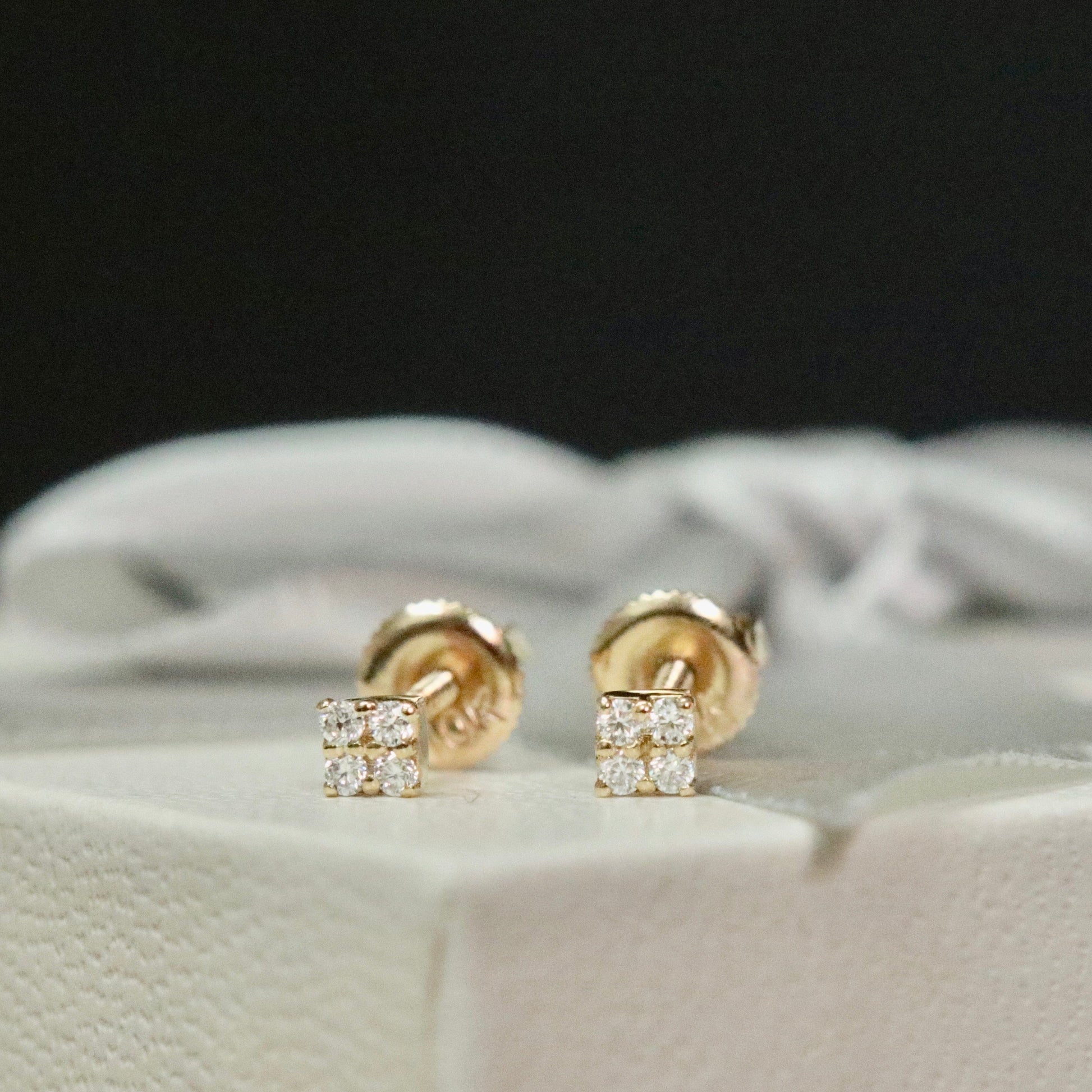 Boucles d'oreilles Les minis Carrés en or 10K et moissanites
