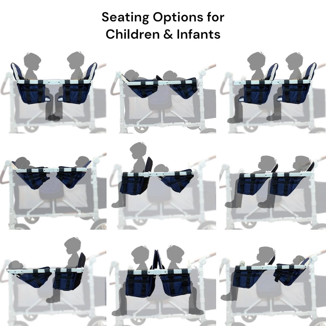 Infant reclining seats are recommended for babies 6 months and up and padded base of the wagon may be used from newborn onwards.
