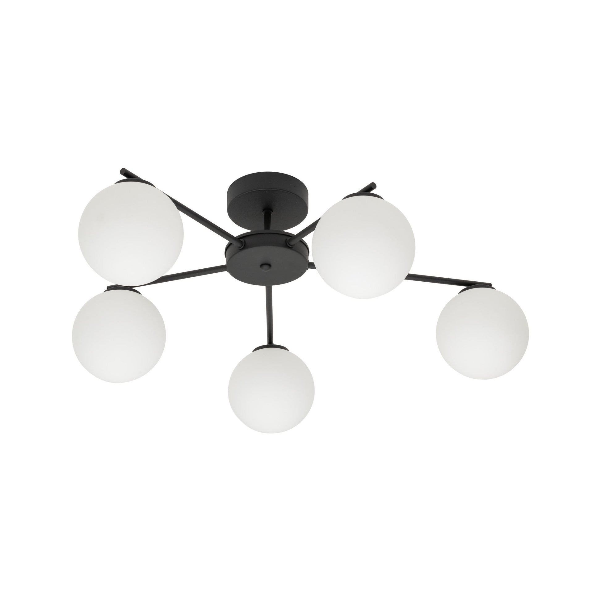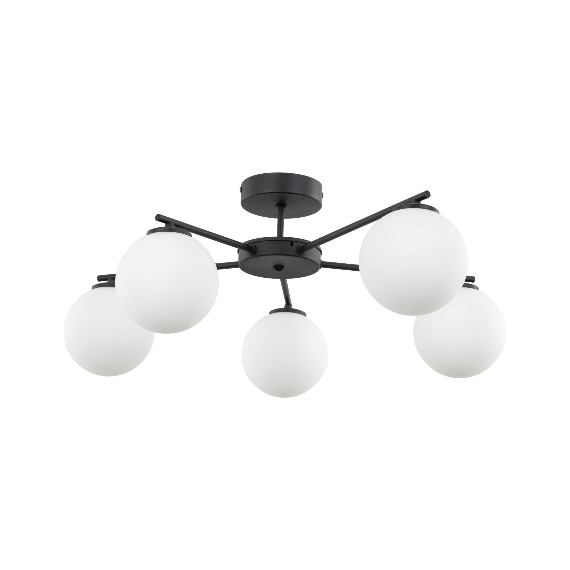 The ELTON lamp collection offers elegant ceiling lighting that brings charm to any room. Crafted from black metal, these lamps feature three or five arms of varying lengths, each ending in a striking opal white lampshade. With their minimalist design, ELTON lamps are ideal for the living room, bedroom, or dining room, adding a modern touch to your space. Choose ELTON lamps to create a distinctive and inviting atmosphere in your home!