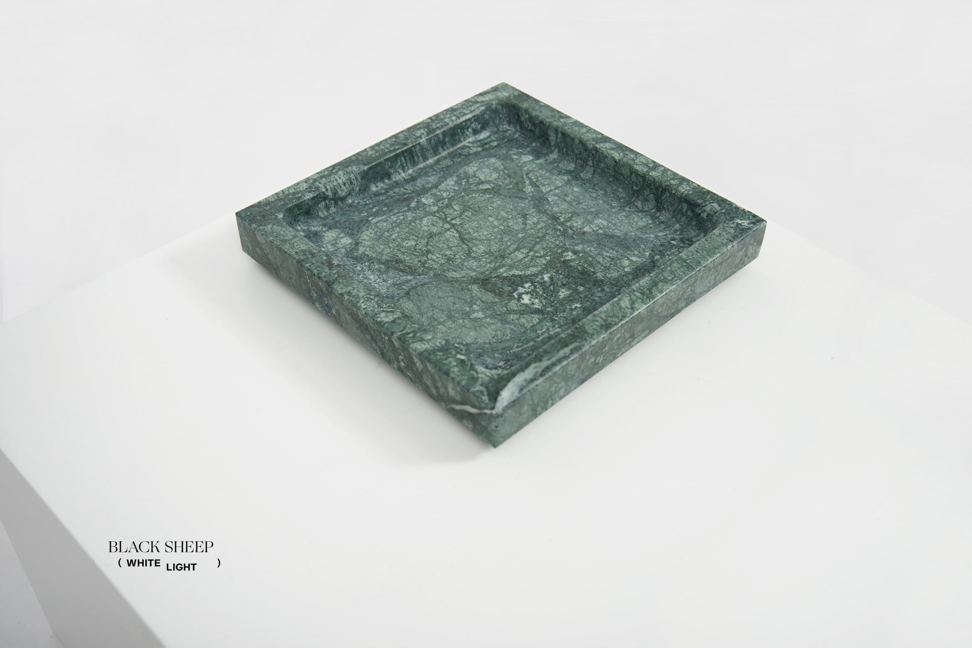 Our marble square tray is carved from a solid piece of marble with an elegant base reveal, and finished in a honed surface treatment.
