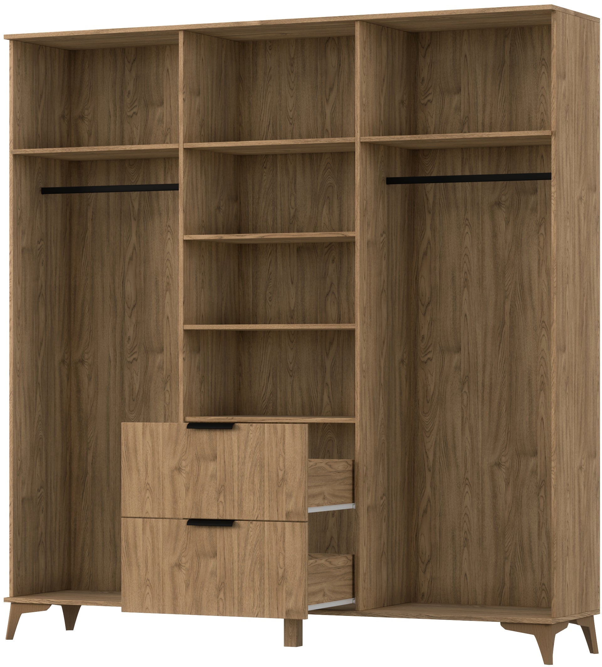 Entsian Oak Wood Paneled Free Standing Wardrobe - Artisan Oak