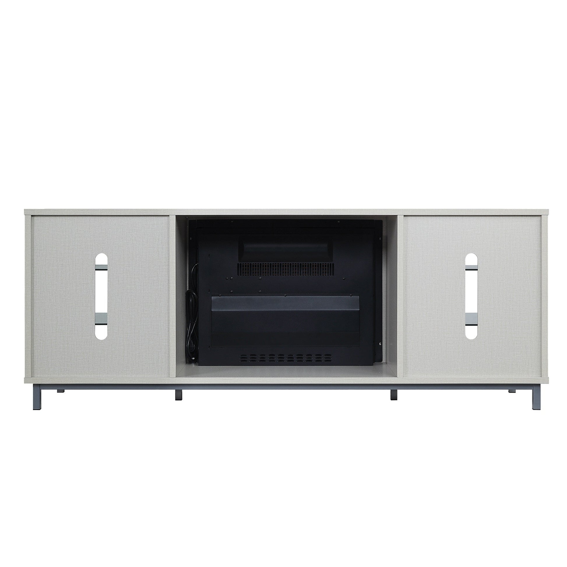 Firey 60" TV Stand/Fireplace with Glass Shelves - Beige Gloss