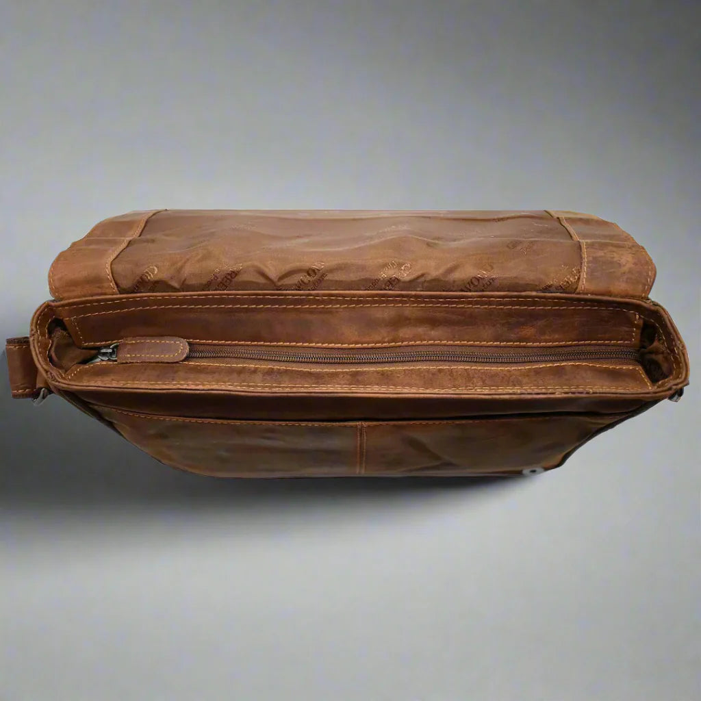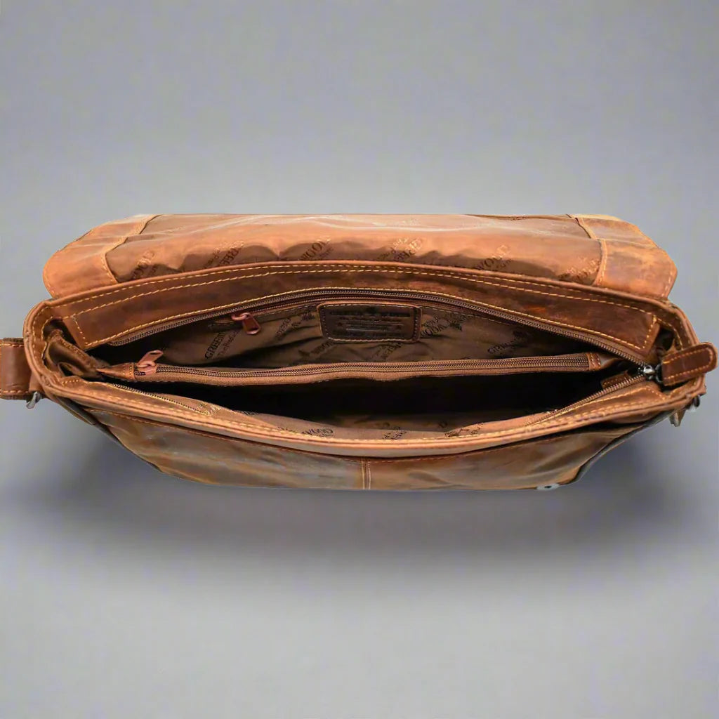 Greenwood Leather Laptop Bag. Premium Waxed Pull-Up Leather Messenger Bag
