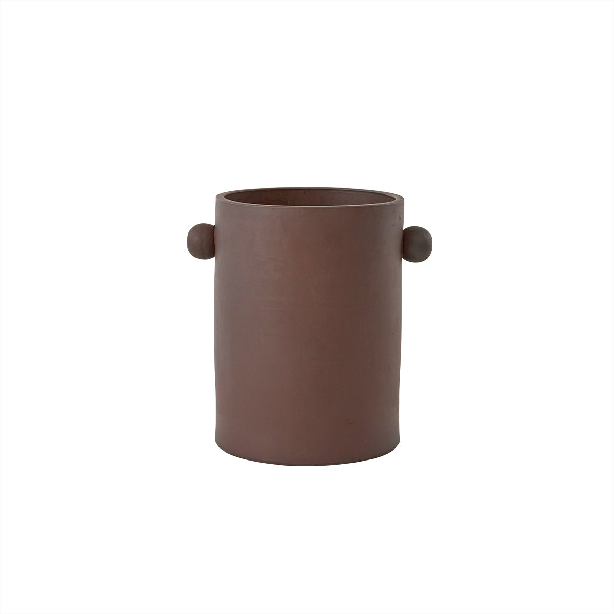 Enhance your wellbeing on the terrace or balcony with the beautiful Inka Planter in terracotta. The planters simple expression and organic shape will stand out beautifully with your favourite plants or trees. The decorative handles on each side make the design unique.