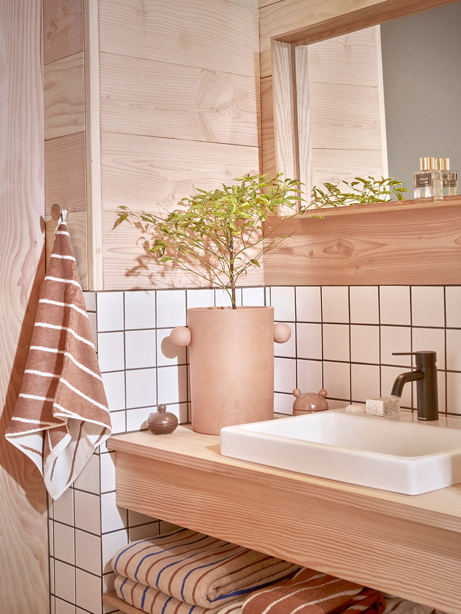 Enhance your wellbeing on the terrace or balcony with the beautiful Inka Planter in terracotta. The planters natural expression and organic shape will stand out beautifully with your favourite plants or trees. The decorative handles on each side make the design unique.
