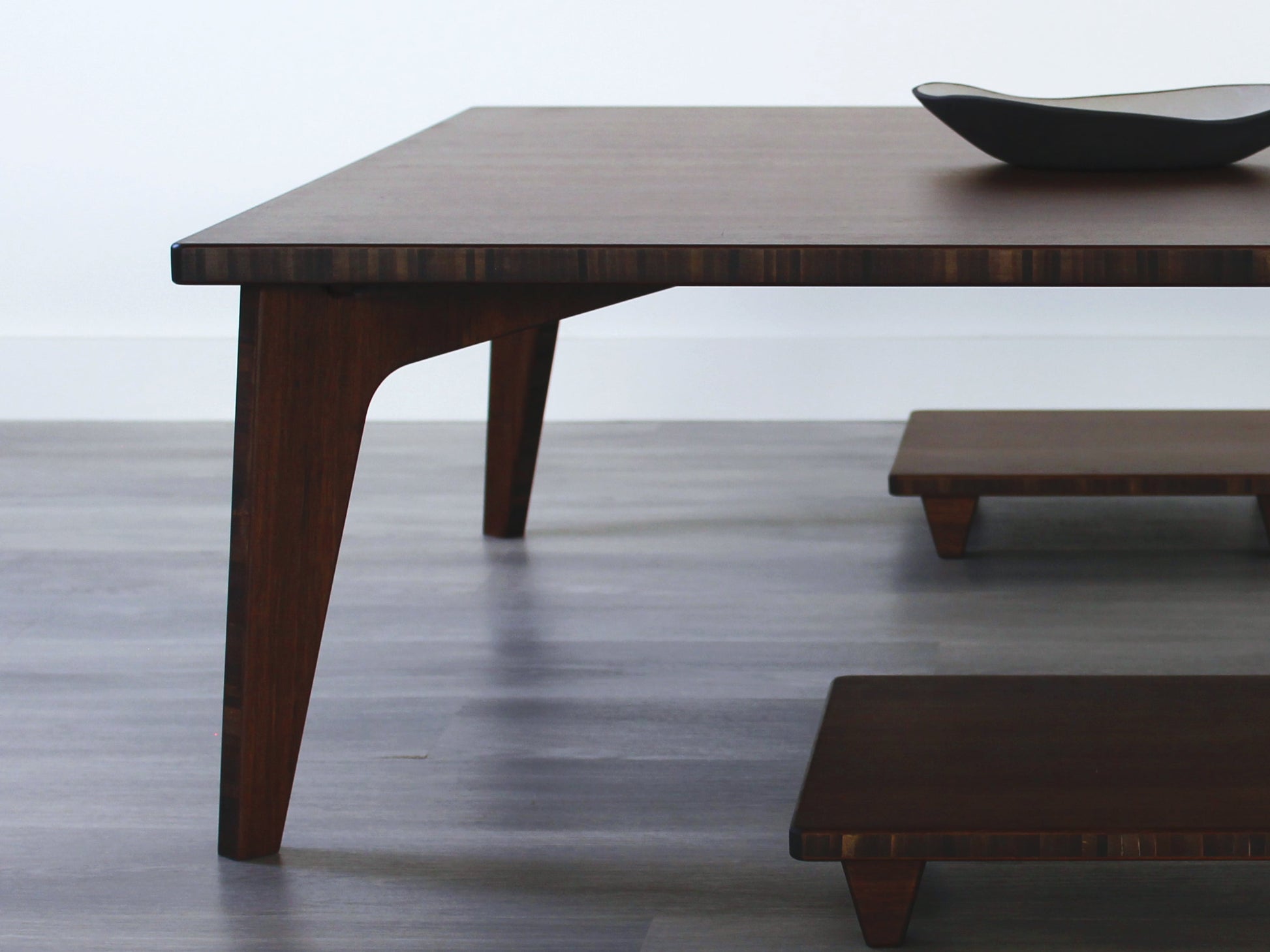 One of our most spacious LOW Tables, designed to be the ultimate versatile piece for your living space. Crafted from sustainable bamboo, this table showcases a smooth, walnut finish that highlights the bamboo’s unique grain, adding warmth and elegance to your decor.