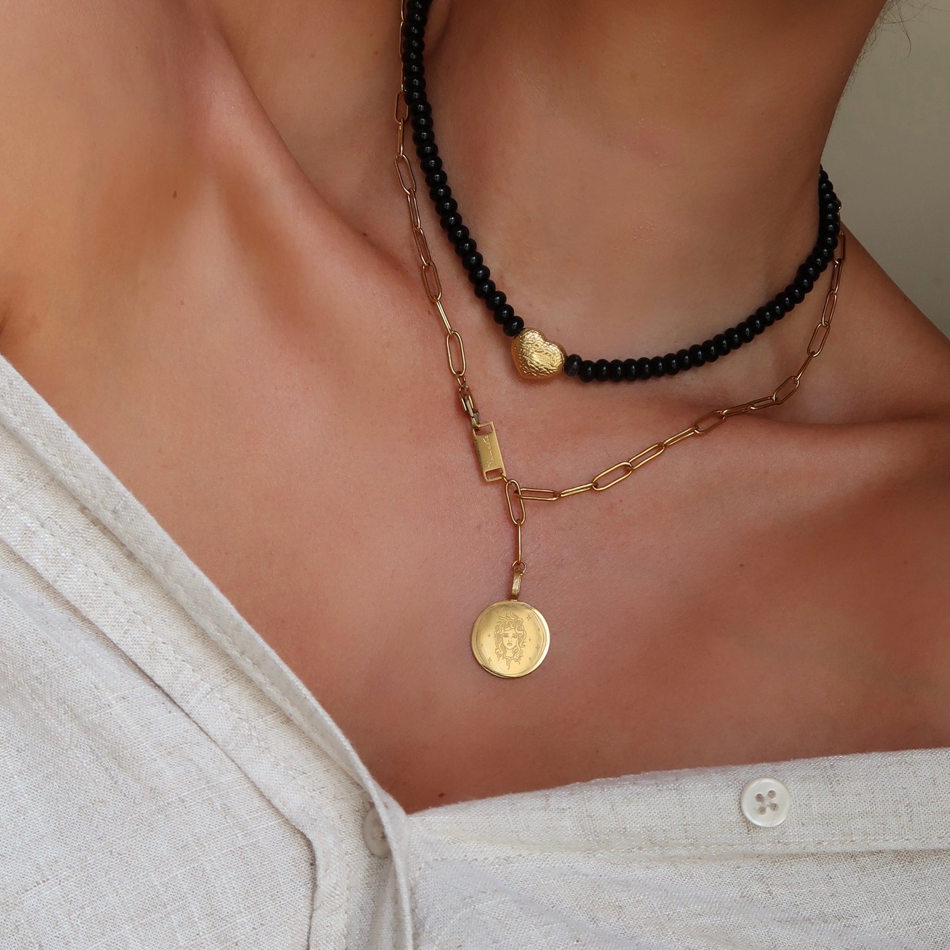 Necklace with a detailed engraving of the iconic Medusa, capturing her fierce and captivating essence in a stunning piece of jewelry.