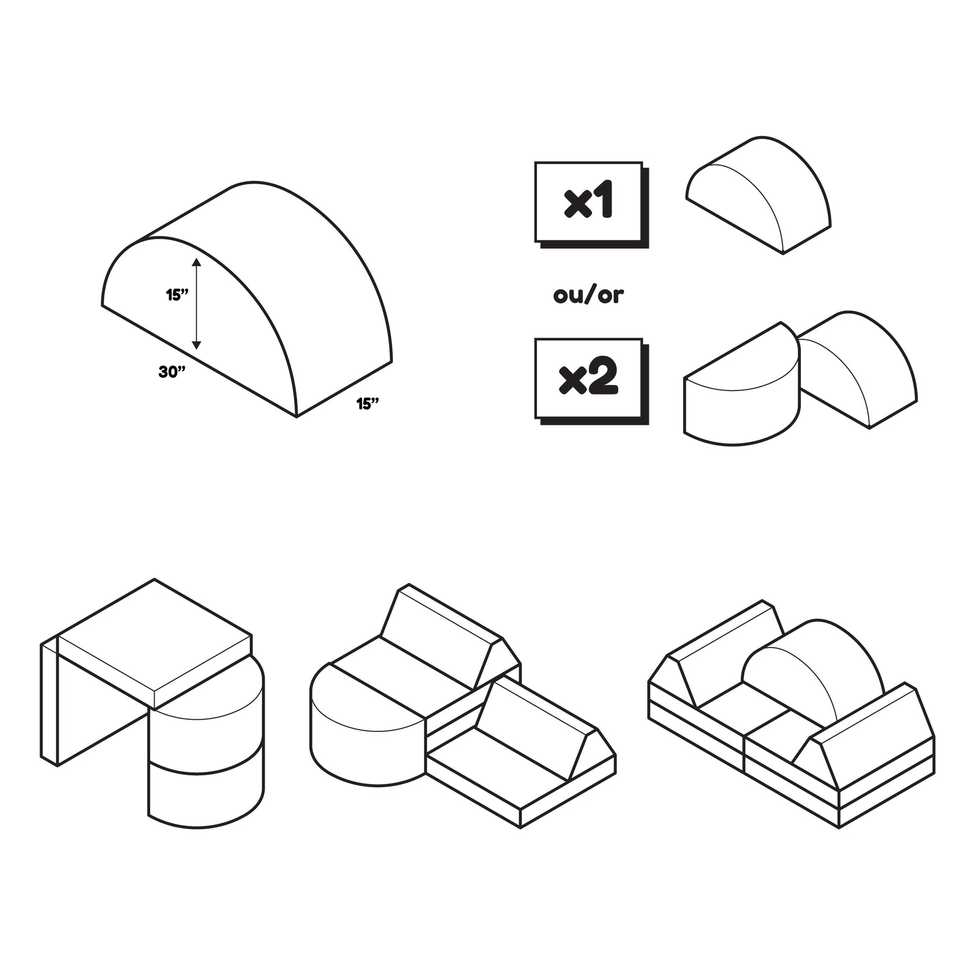 Designing the perfect half-circle piece took quite a bit of testing, but it was worth it! Choosing to make them extra wide with a full 15 inches not only offers more sturdiness and stability while using, but it also ensures that they are perfect for rocking 😉 A fun addition to your playroom altogether, your play options just became much more interesting!
