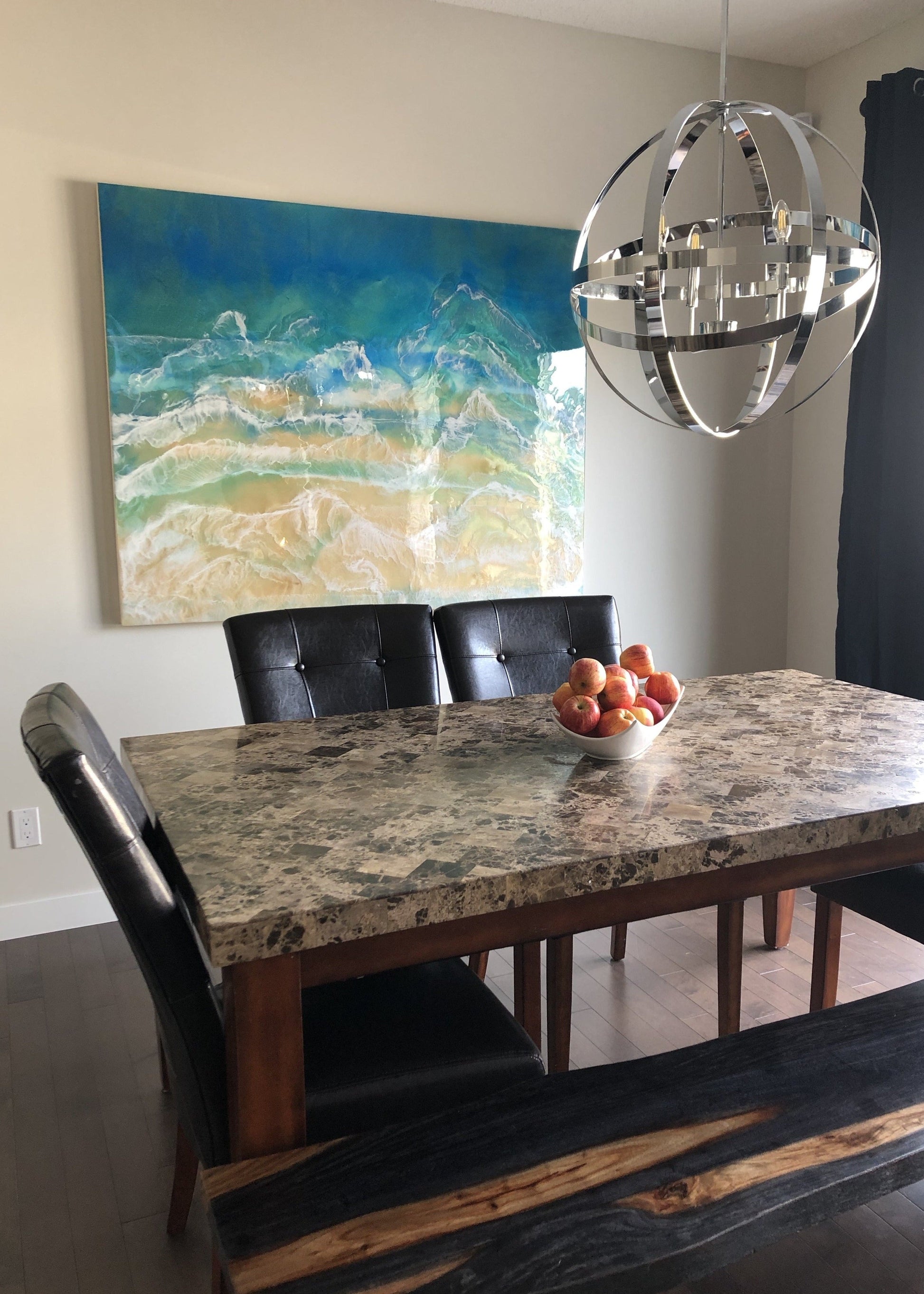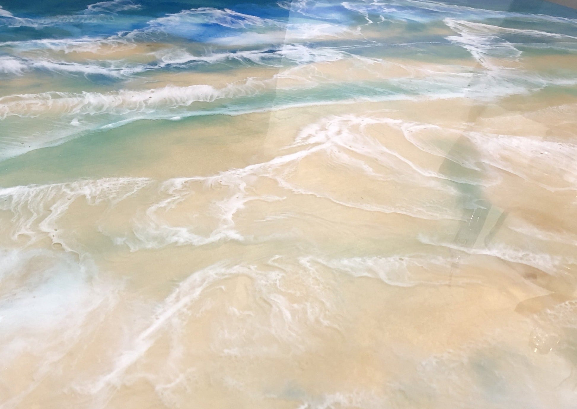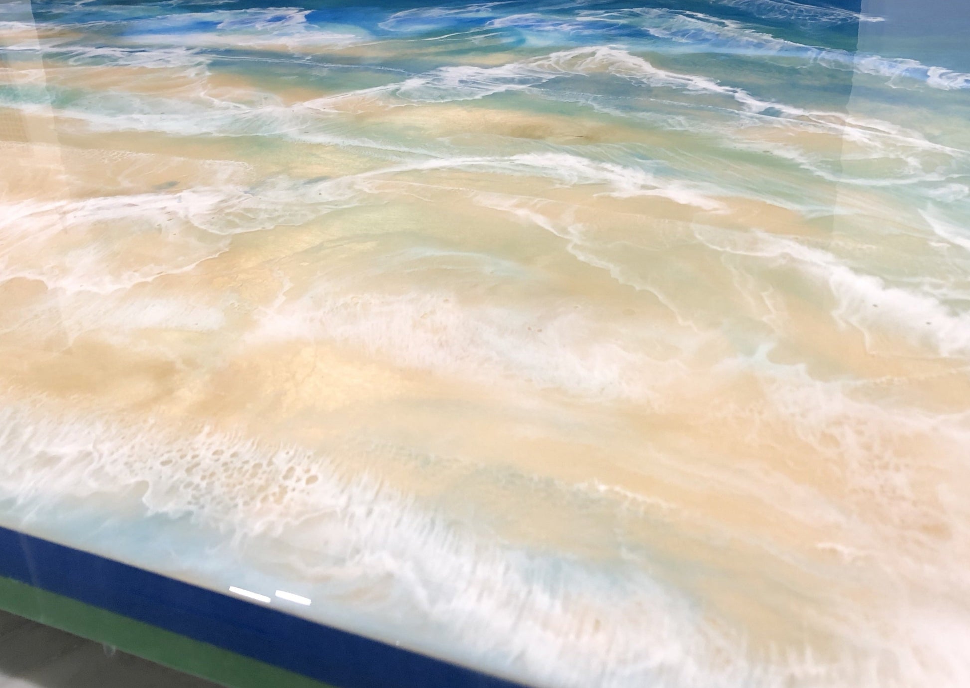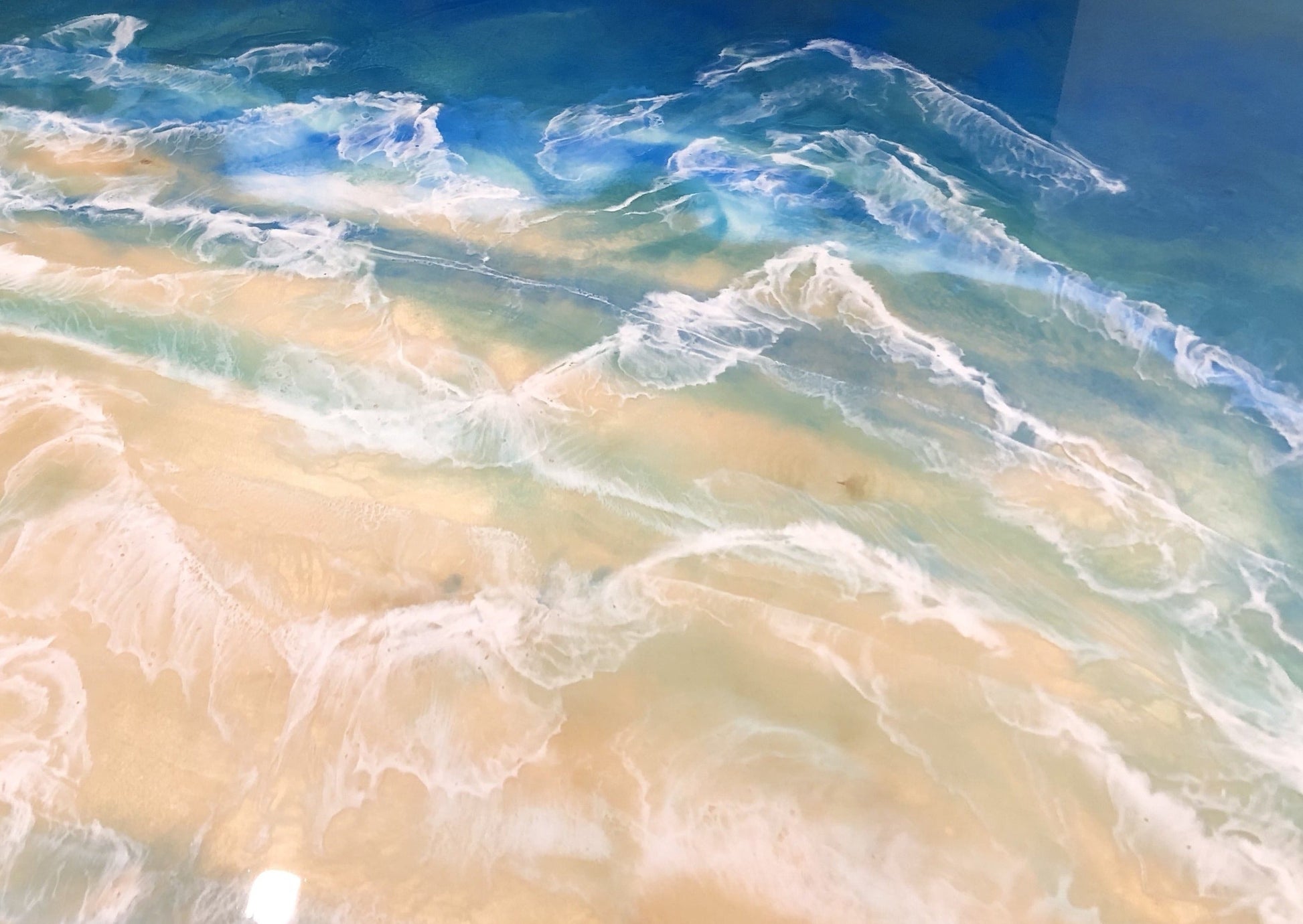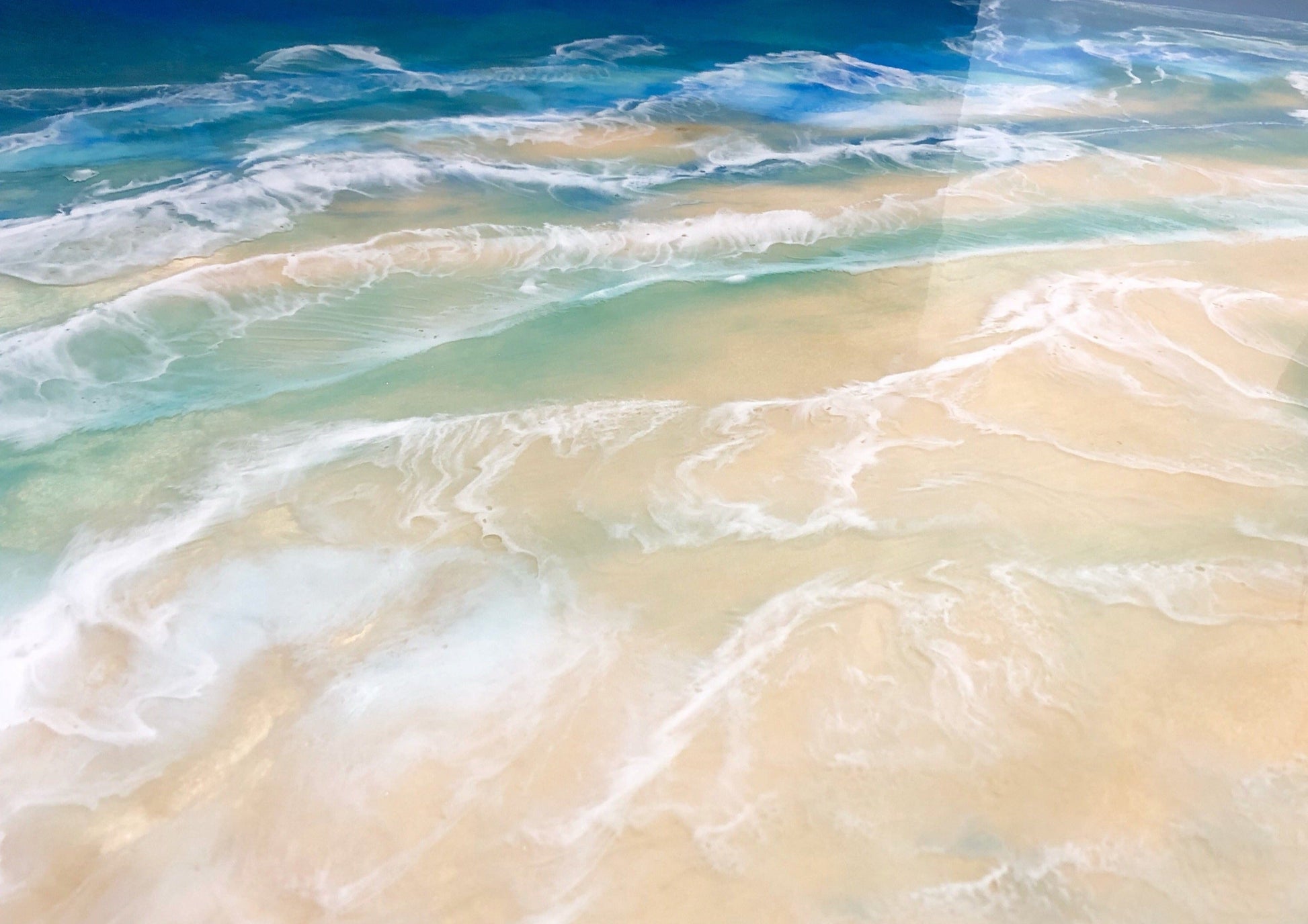 A stunning, one-of-a-kind Resin & Acrylic Painting depicting the mesmerizing blue waters of the ocean on a carefully crafted Cradled Birch Panel.