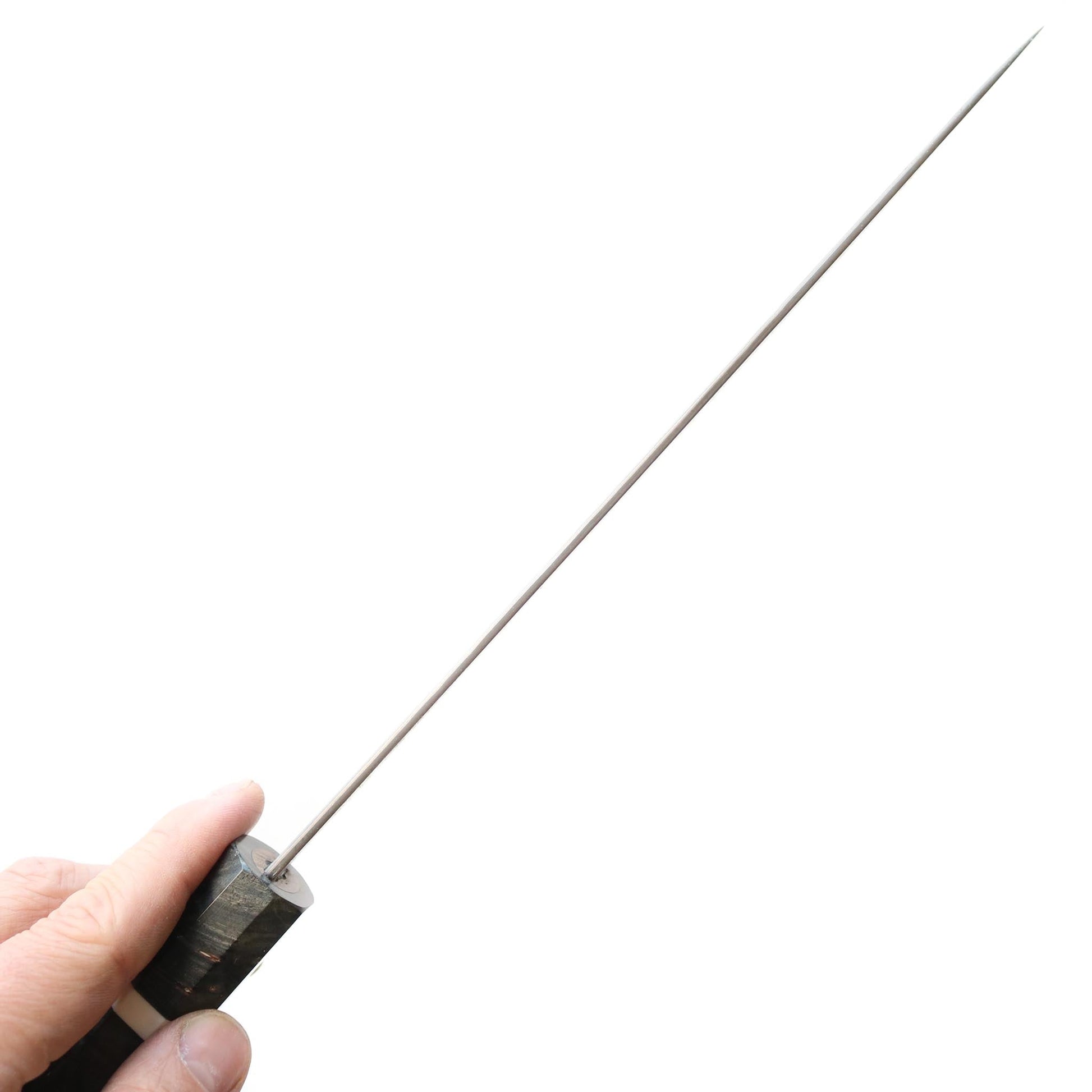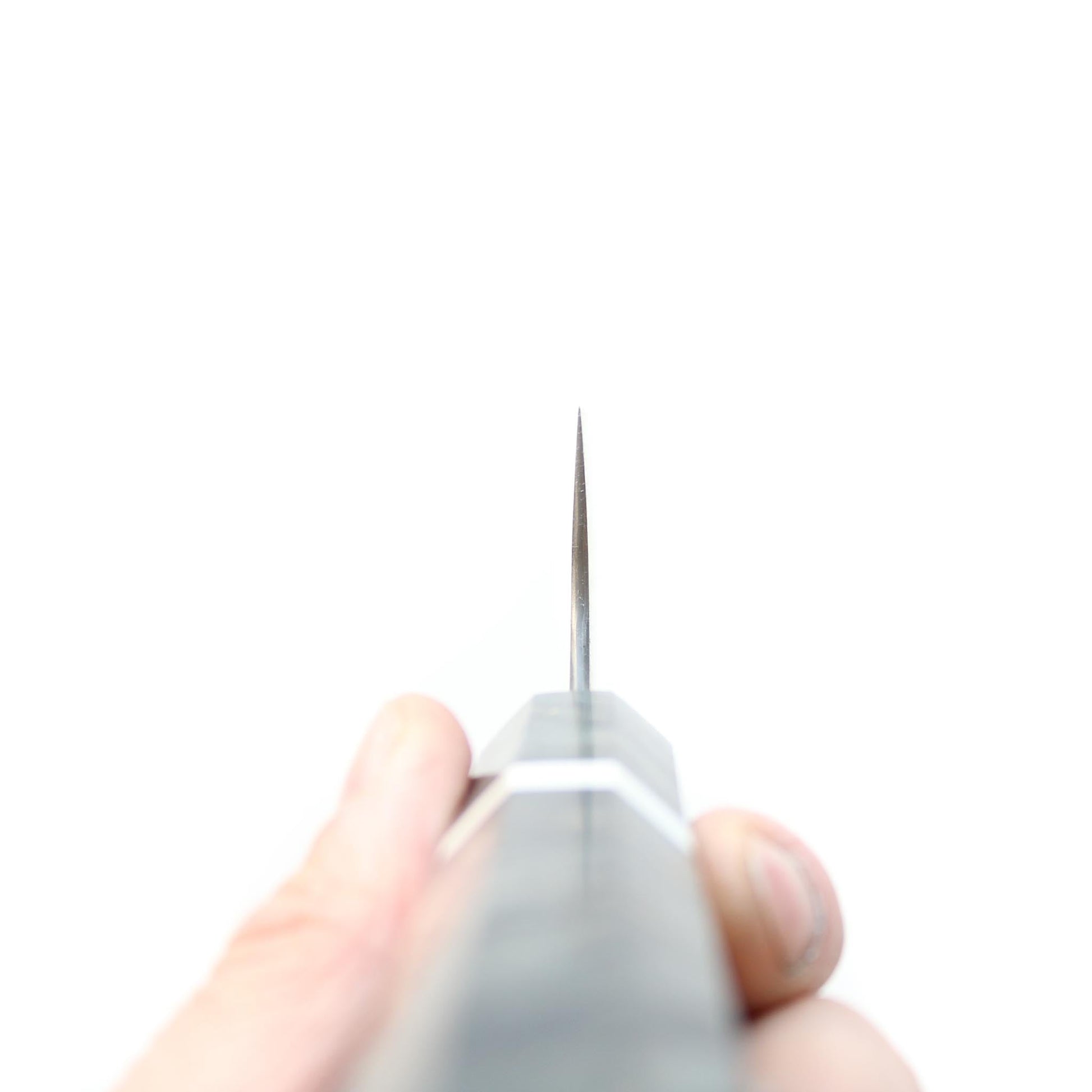 The Gyuto is the Japanese equivalent to a standard western style Chef's knife and is THE most versatile shape available. It can be used to break down fish and other animals, chop vegetables with both an up and down and rocking motion, slice cooked and raw proteins and anything else you can think of. We highly recommend this shape to anyone looking for that one go to knife they can grab with confidence for any task.