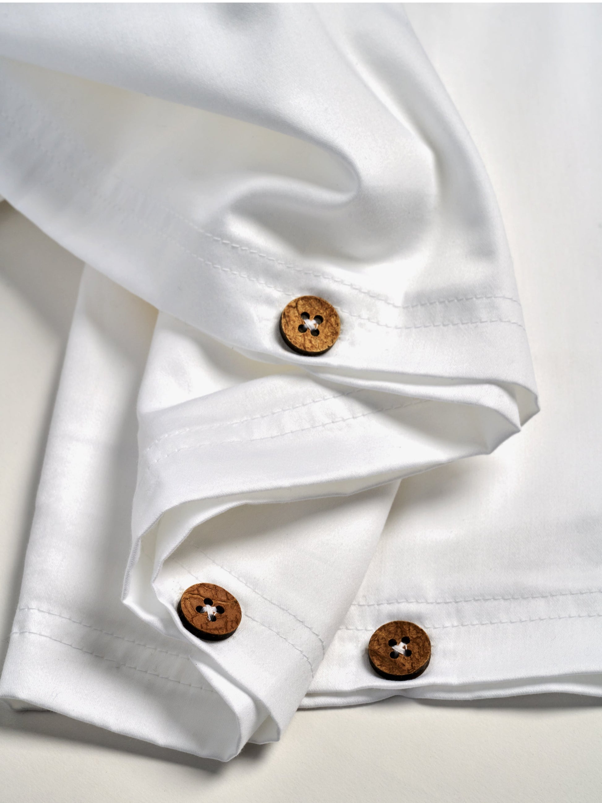 - Envelope closure with eco-friendly buttons for a secure, clean edge.