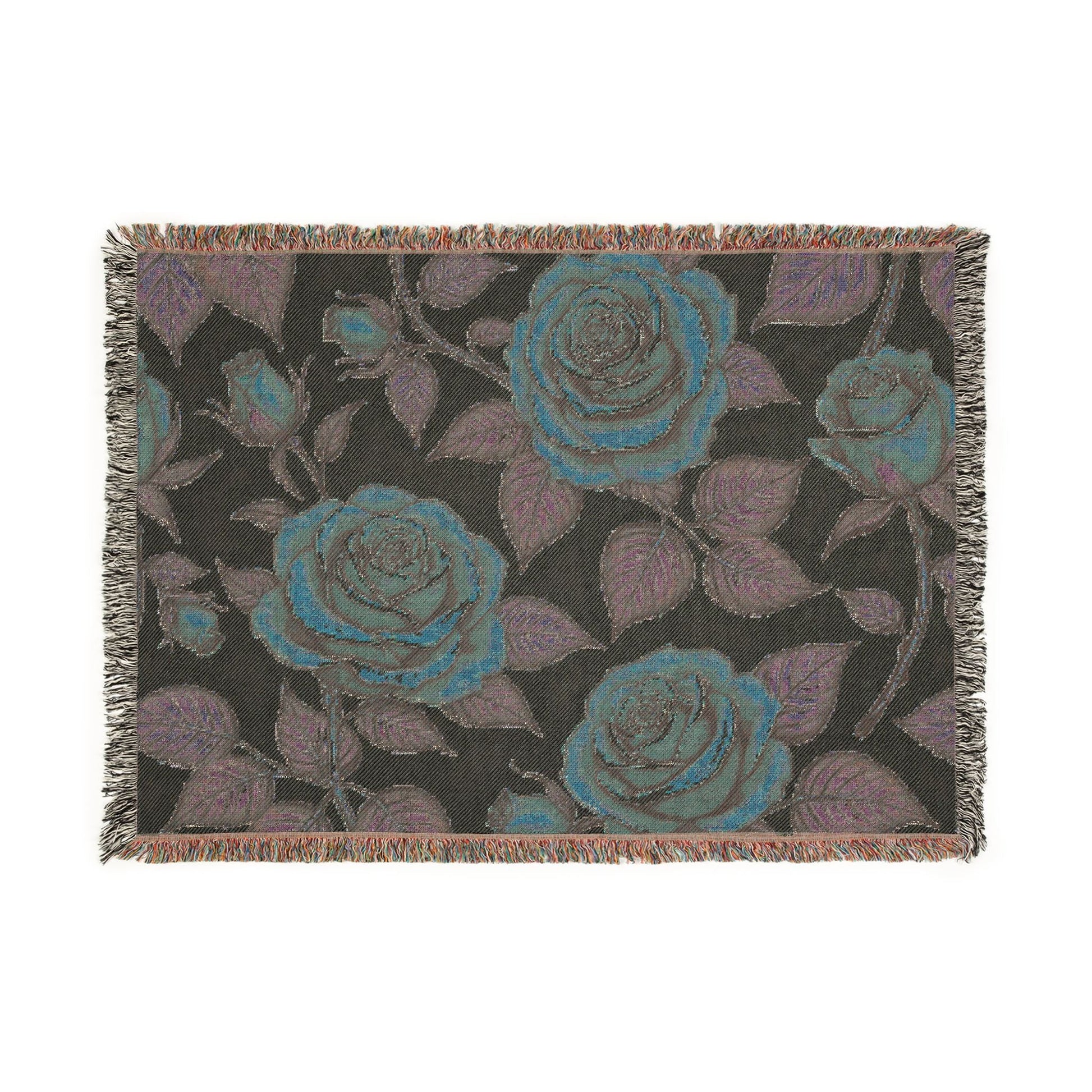 Rose Woven Blanket — Vintage Floral Throw for Sofa & Bed