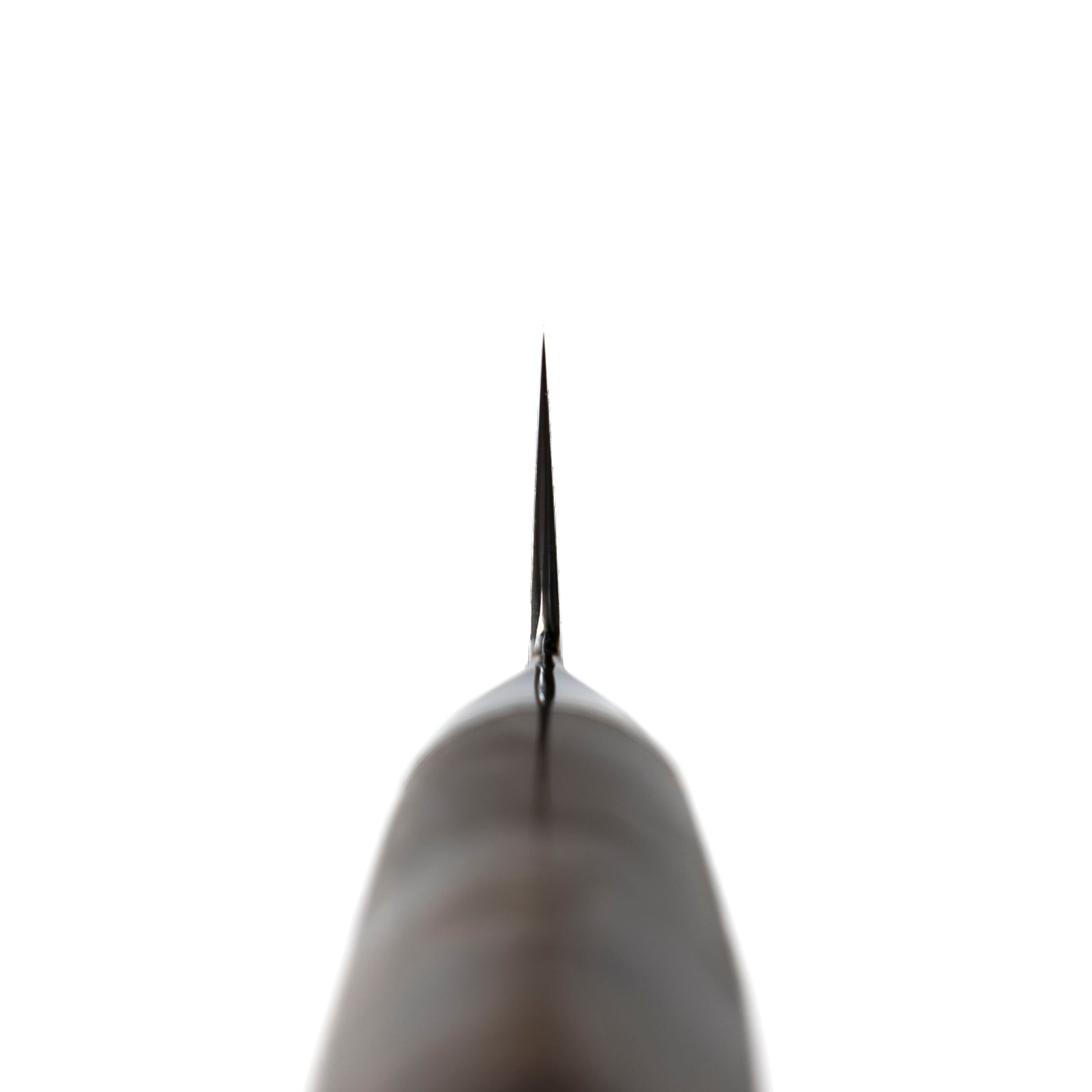 The Sujihiki is meant for all things slicing. The long slender blade allows the user to perform nice long strokes and avoid sawing through proteins which leads to perfect, thin slices and no more tearing. Carving roasts, slicing brisket, thinly slicing fish are all within its grasp.