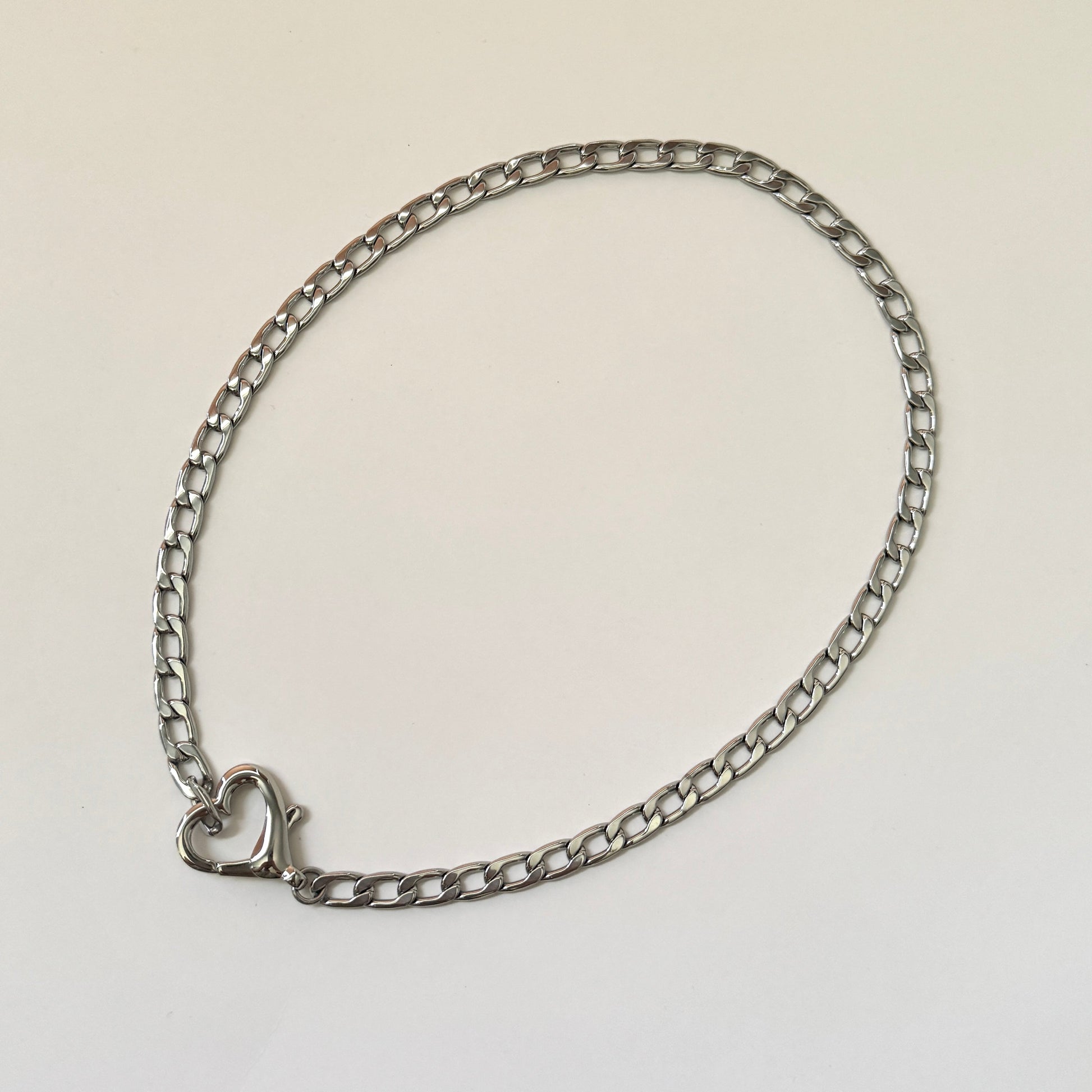 Necklace constructed with a chunky figaro chain and a heart clasp, making it a stylish and secure addition to your jewelry collection.