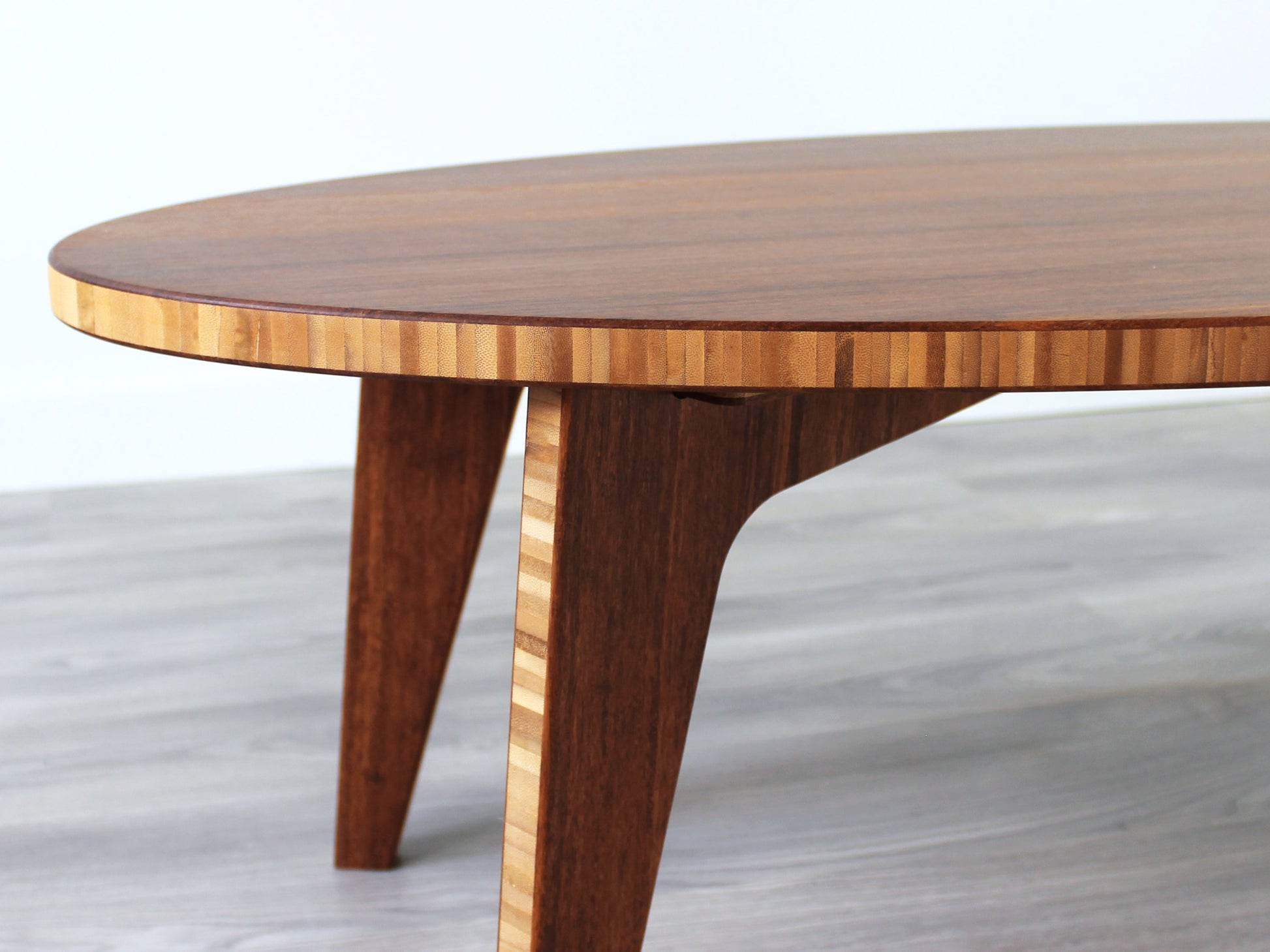 Elevate your home with our oval-shaped bamboo table, where functional beauty meets sustainable craftsmanship, creating a stylish centerpiece that invites relaxation and connection in any room.