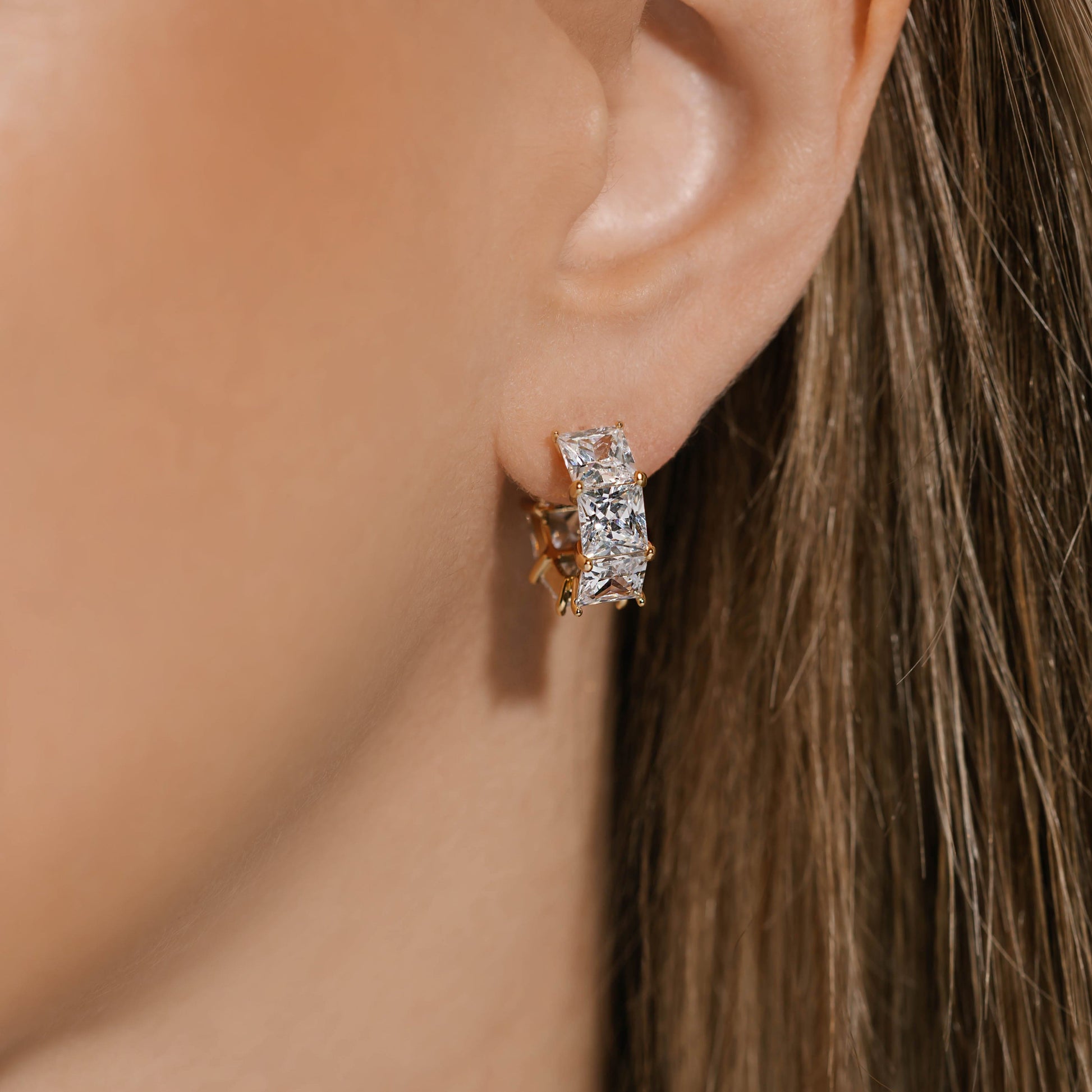 a striking balance of bold glamour and refined elegance, the hayley hoop is designed to turn heads. Featuring brilliant princuss-cut cubic zirconia, these statement hoops add a luminous touch to any look. Perfect for special occasions or effortlessly elevating everyday style, they capture the essence of modern sophistication.