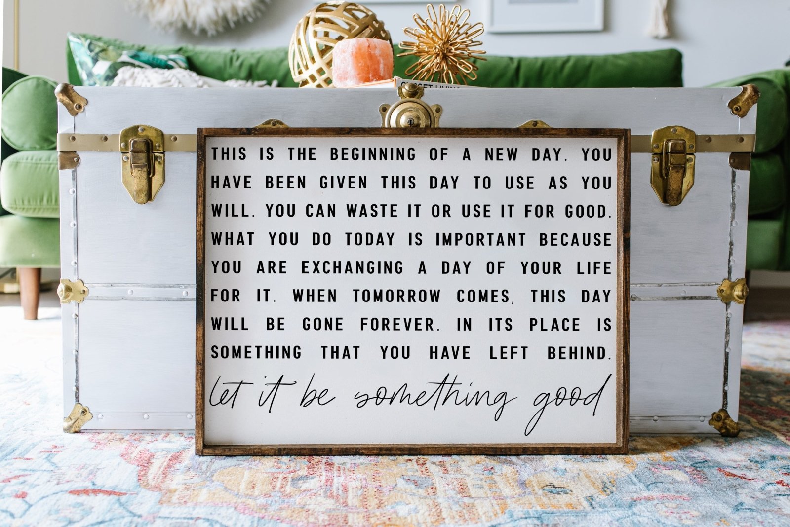 "this is the beginning of a new day. You have been given this day to use as you will. You can waste it or use it for good. What you do today is important because you are exchanging a day of your life for it. When tomorrow comes, this day will be gone forever; in its place is something that you have left behind. Let it be something good. "