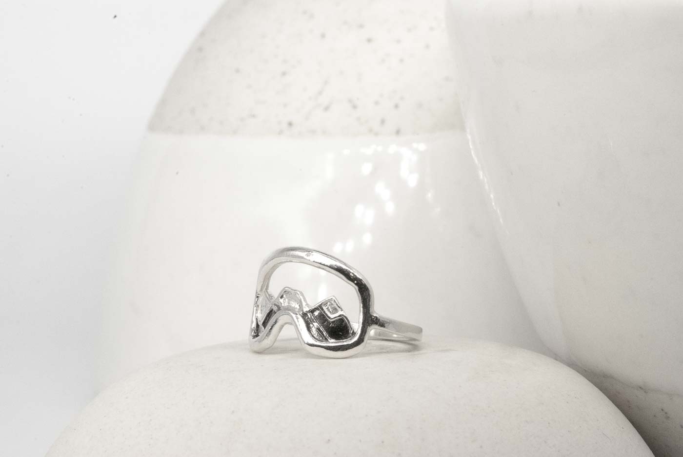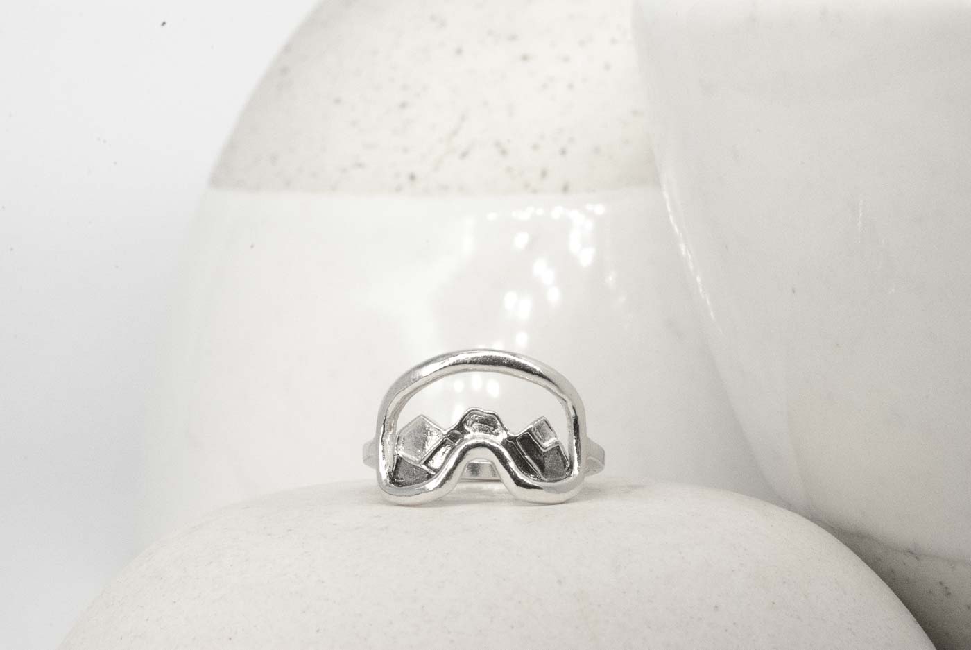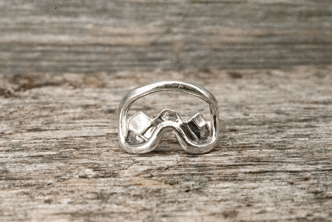 Capture the adventurous spirit with the Three Sisters Goggle Ring. Crafted from solid sterling silver, this bold and sophisticated ring embodies the essence of your alpine journeys. From epic trails to epic celebrations, wear this limited edition piece and relive your favourite memories. Located in Alberta, the Three Sisters represent Faith, Hope, and Charity, making this ring a meaningful keepsake of your mountainous experiences.