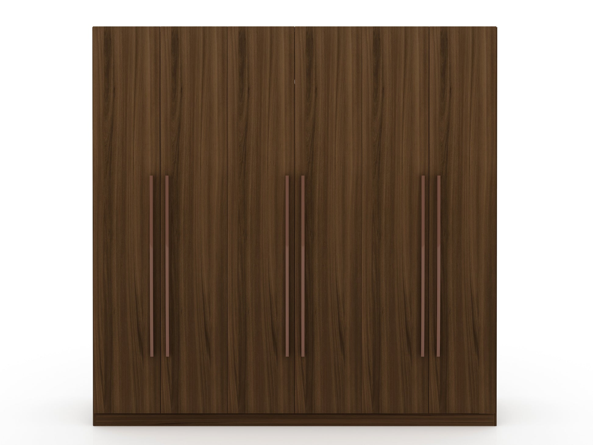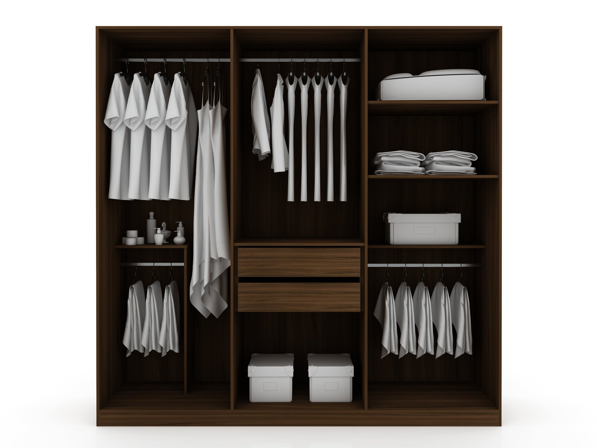 • 3-Sectional Wardrobe Includes 4 Fixed Shelves, 4 Aluminum Hanging Rods, and 2 Center Drawers.