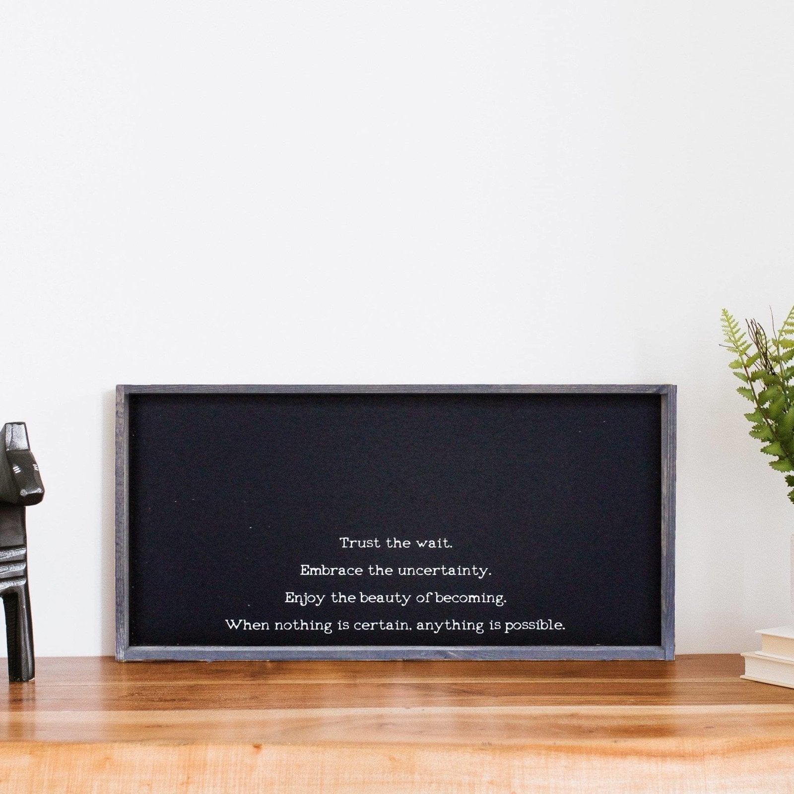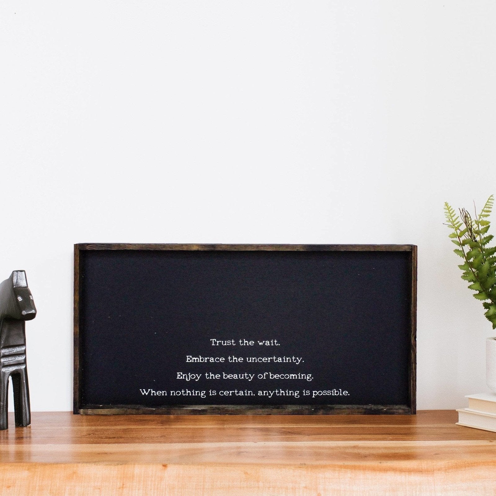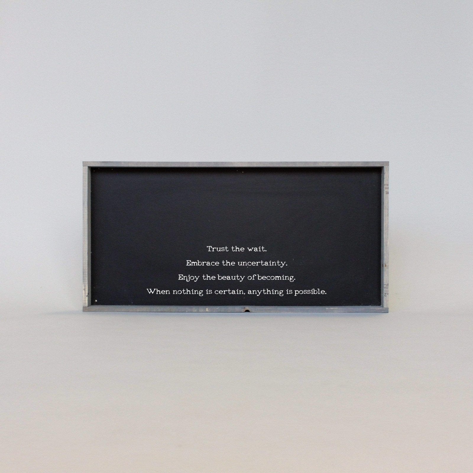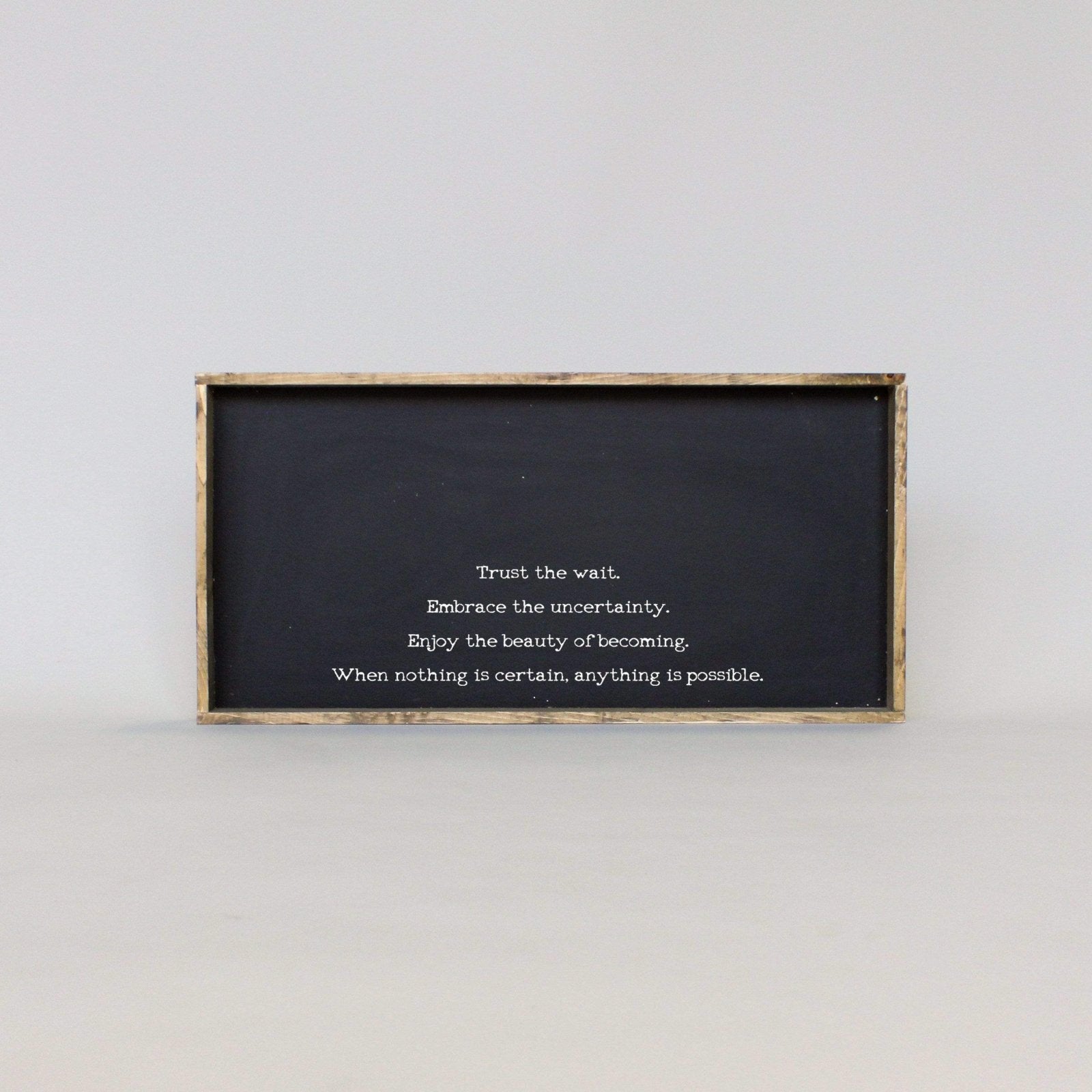 "trust the wait. Embrace the uncertainty. Enjoy the beauty of becoming. When nothing is certain everything is possible. "