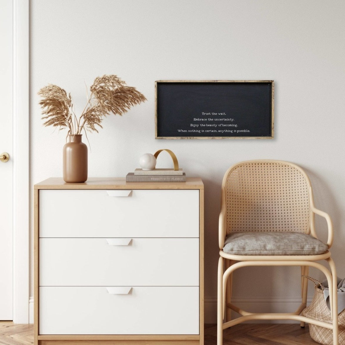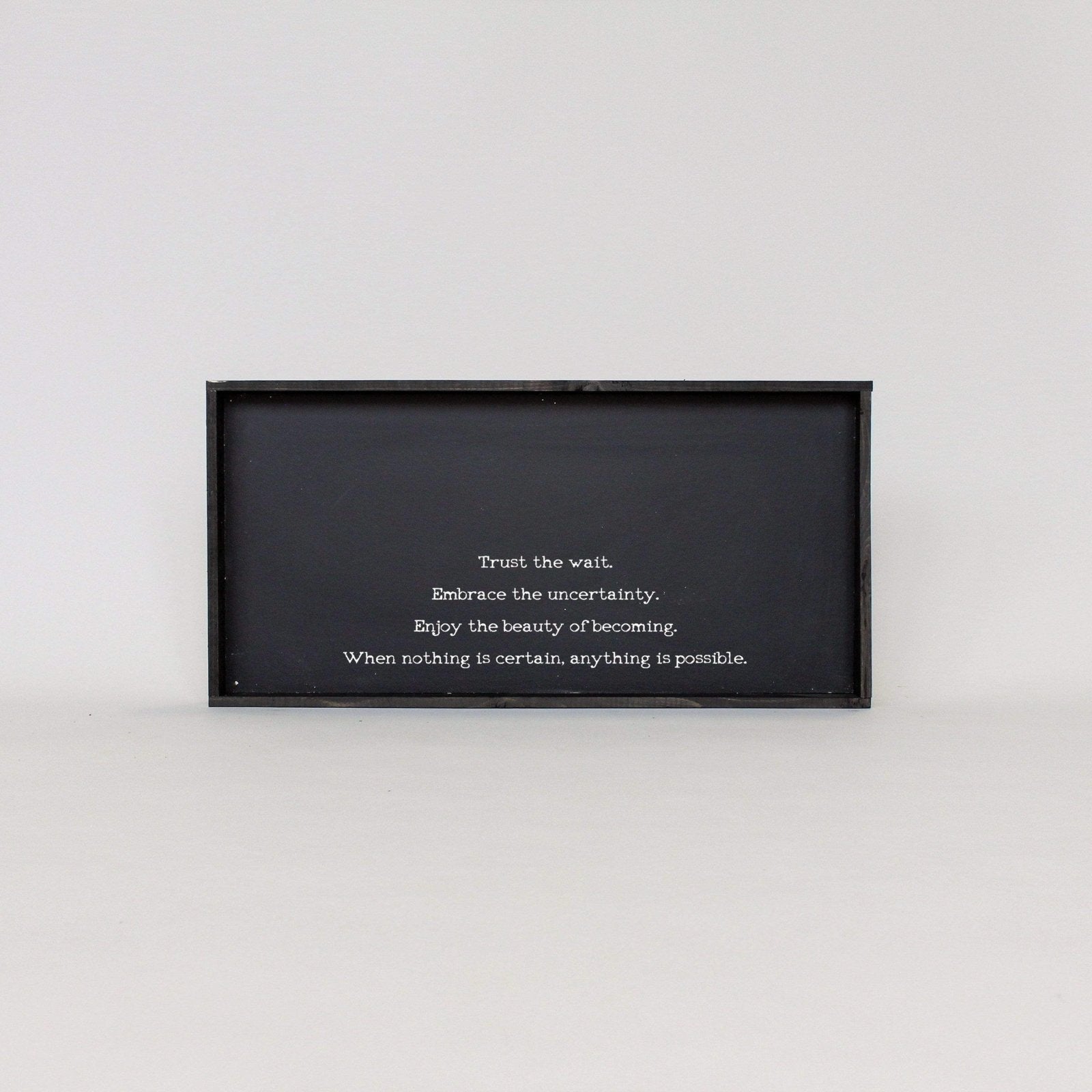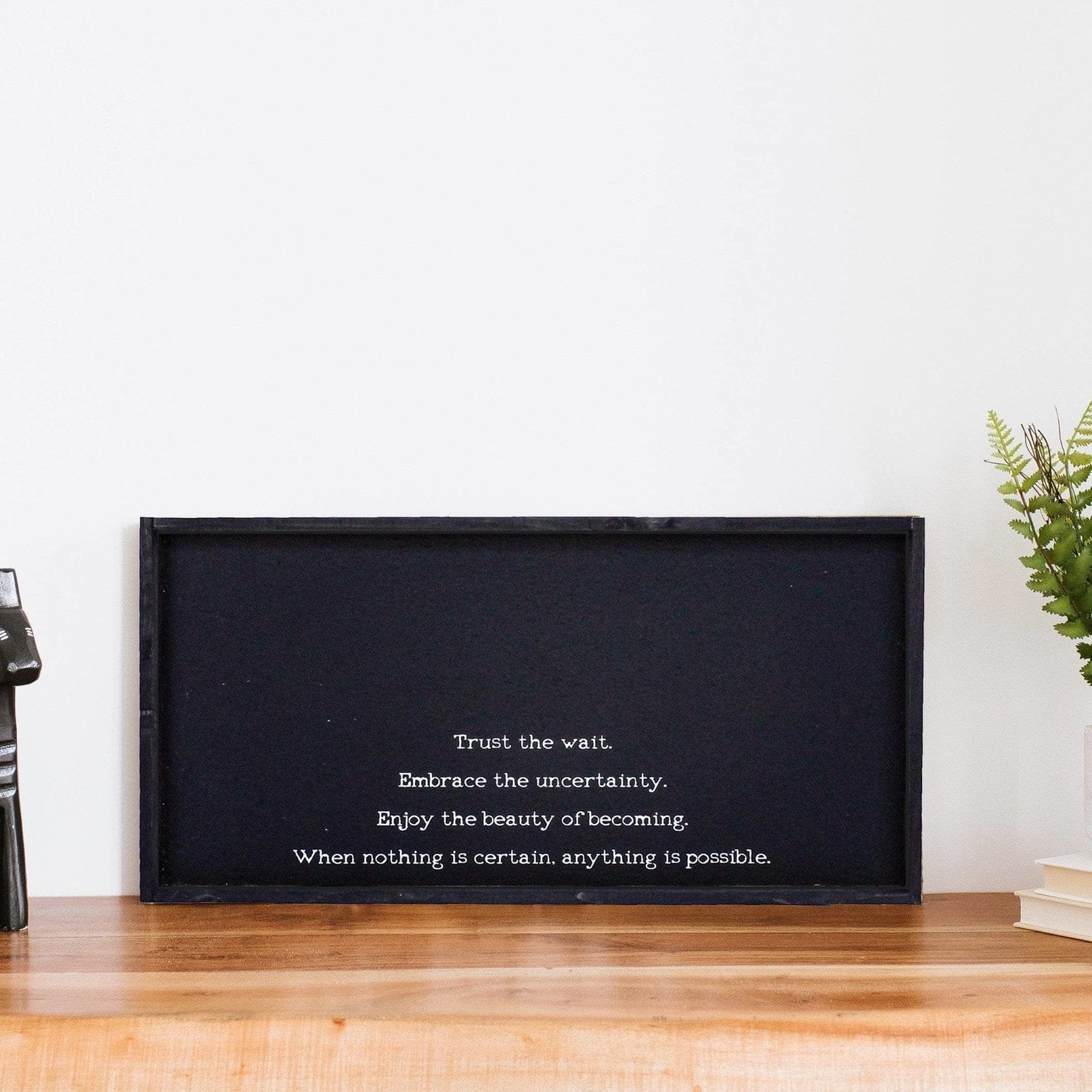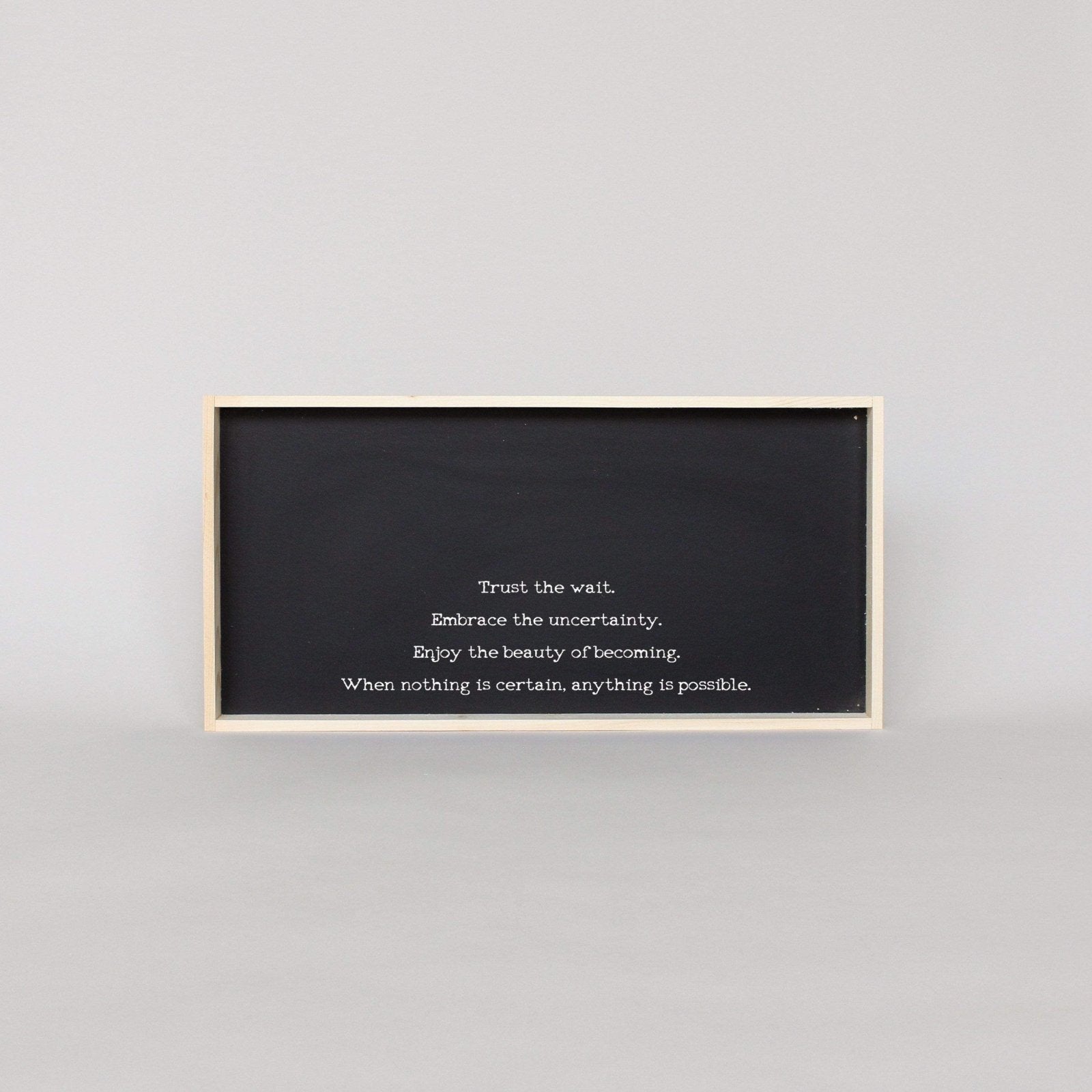 "trust the wait. Embrace the uncertainty. Enjoy the beauty of becoming. When nothing is certain everything is possible. "