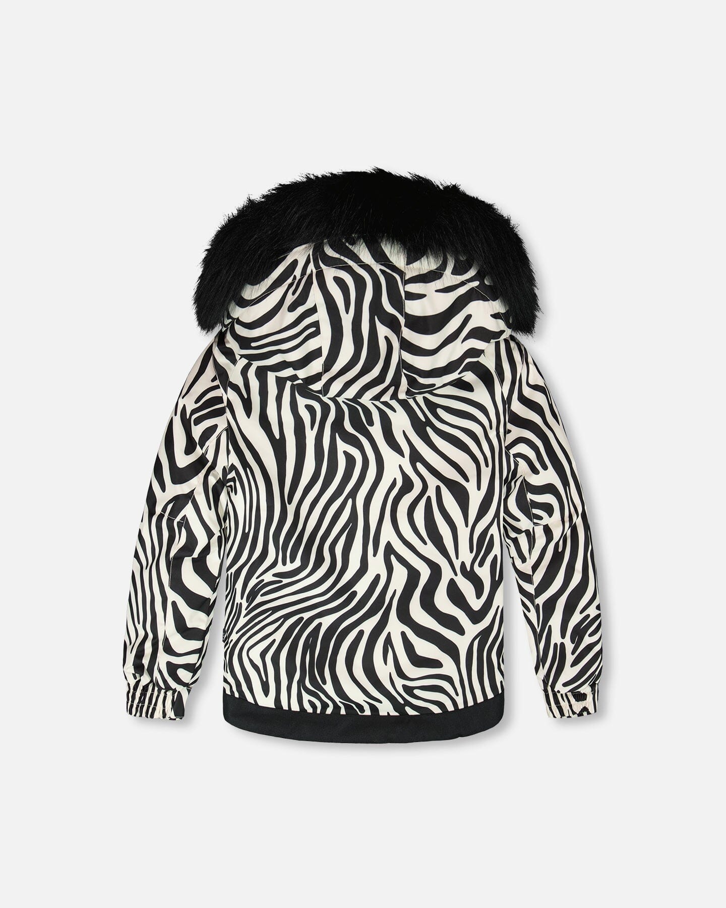Waterproof, breathable, and insulated for cold protection down to -30°C (-22°F), our two-piece PLAY ski suit in fuchsia with a zebra print jacket is designed for maximum comfort, warmth, and performance in the snow. This winter snowsuit features a fleece-lined jacket with a detachable and adjustable hood, articulated sleeves for improved range of motion, elastic cuffs, a snow skirt, expandable sleeves so you can adjust the length as the child grows, and a protective wind flap and chin guard. The pants are constructed with Cordura®-reinforced panels for long-lasting durability, articulated knees, adjustable and removable suspender straps, ankle snow guards, and zippered pockets to hold ski passes and other essentials.