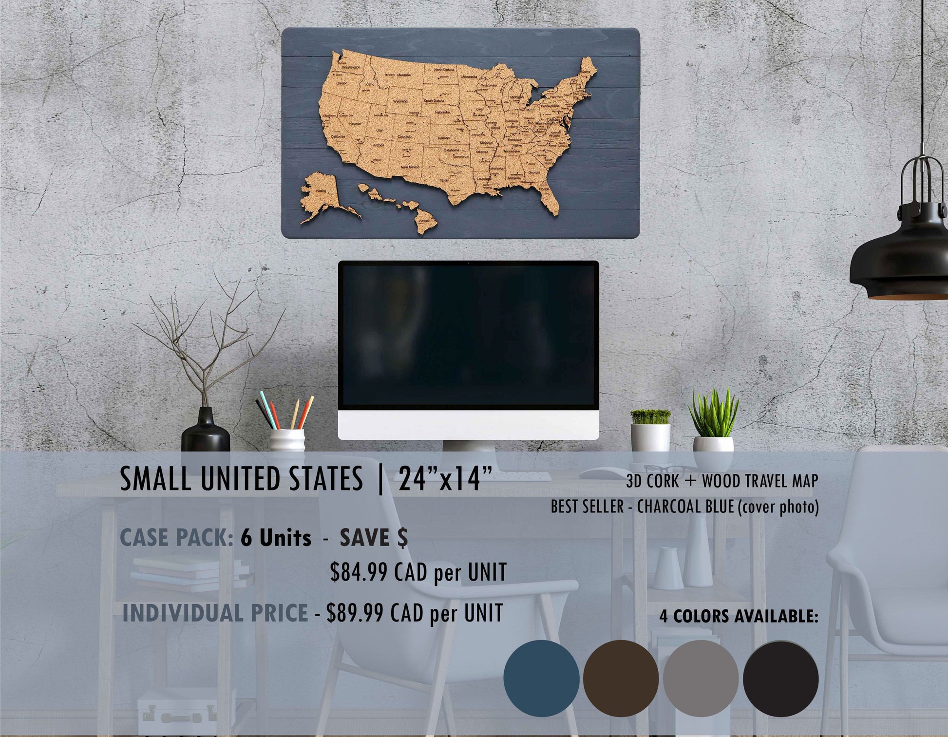 | 380735165282 | USA Push Pin Map 14x24 - Charcoal | US-S-CH |